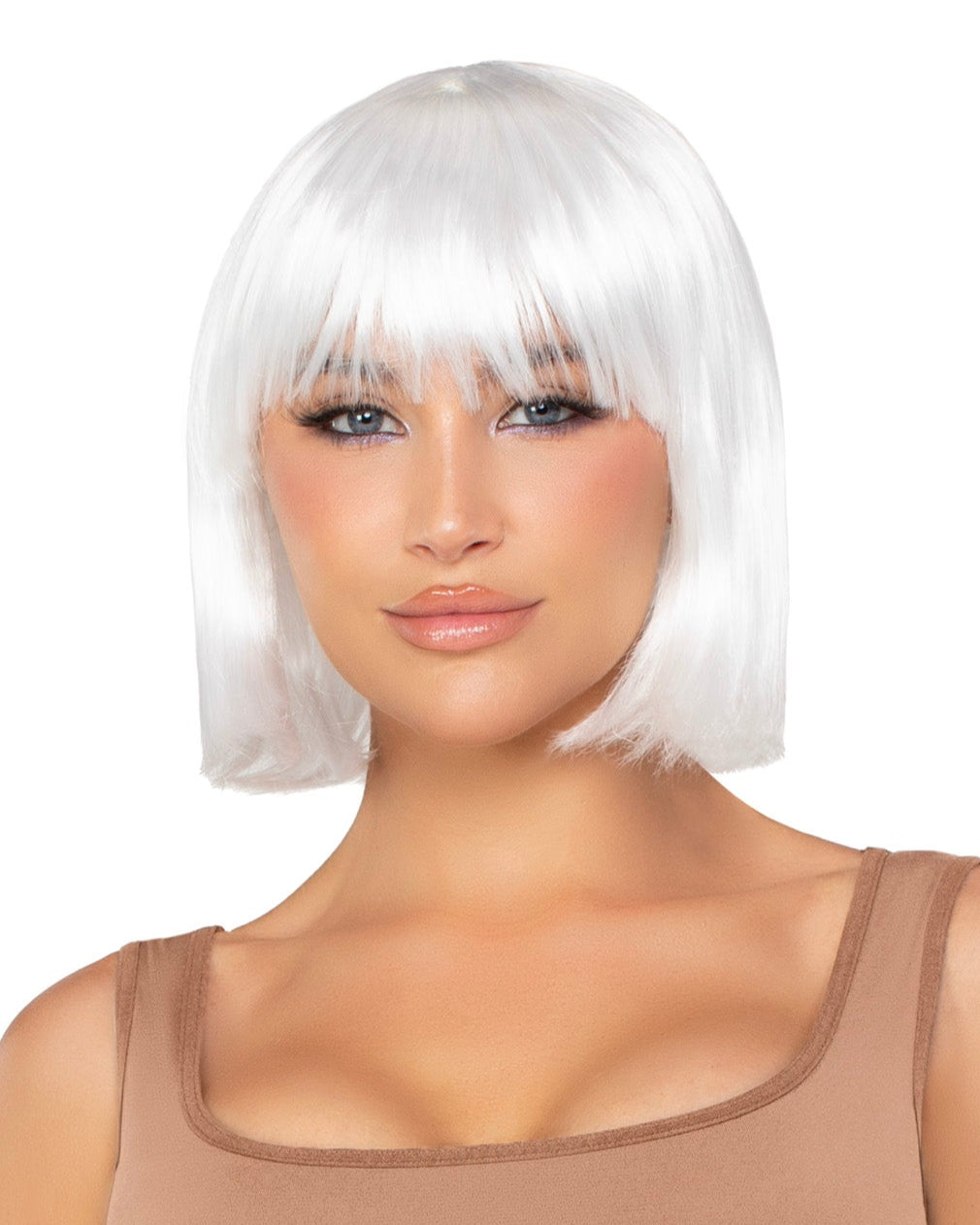 You'll be the sexiest thing this side of the Milky Way in the 13" Pearl Short Natural Bob Costume Wig. This cosmic club ready look features pearly white strands, blunt edge bob and straight across bangs. Complete with an adjustable wig cap for comfortable wear. This magical look is perfect for Halloween, cosplay or music festivals.