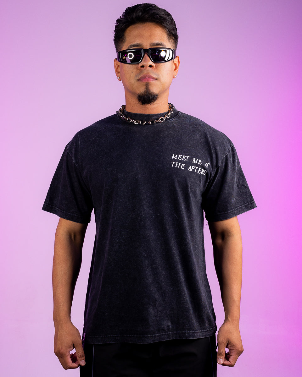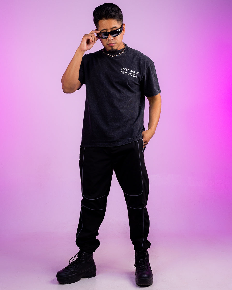 Unleash your daring side with our Meet Me At The Afters Men's T-Shirt! Featuring holographic print on the back with Rave Wonderland logo, this shirt is perfect for everyday wear or raves. Make a bold statement and stand out from the crowd with this dope shirt!