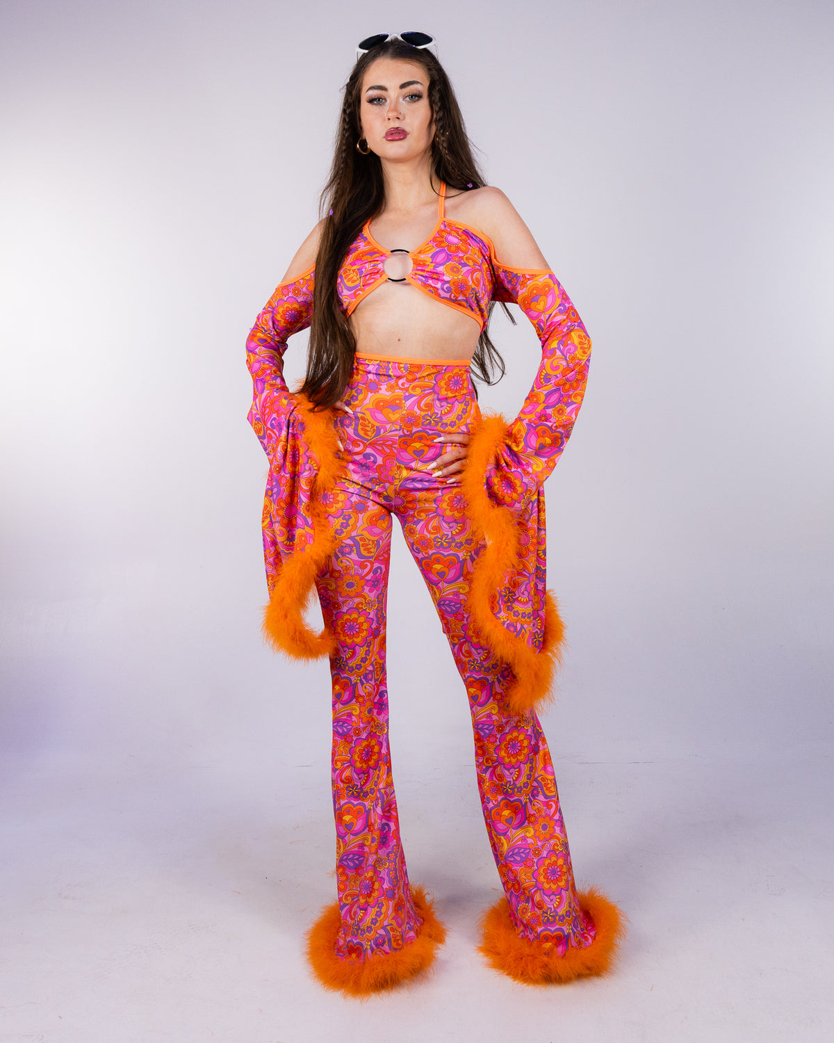 The Paisley Daze Bell Bottoms features a flowy flare cut, perfect for adding extra coverage without the extra heat! The pants are hemmed with soft fluffy faux fur at the bottom. Search "Paisley Daze" to shop the whole collection and effortlessly build your fest fit!