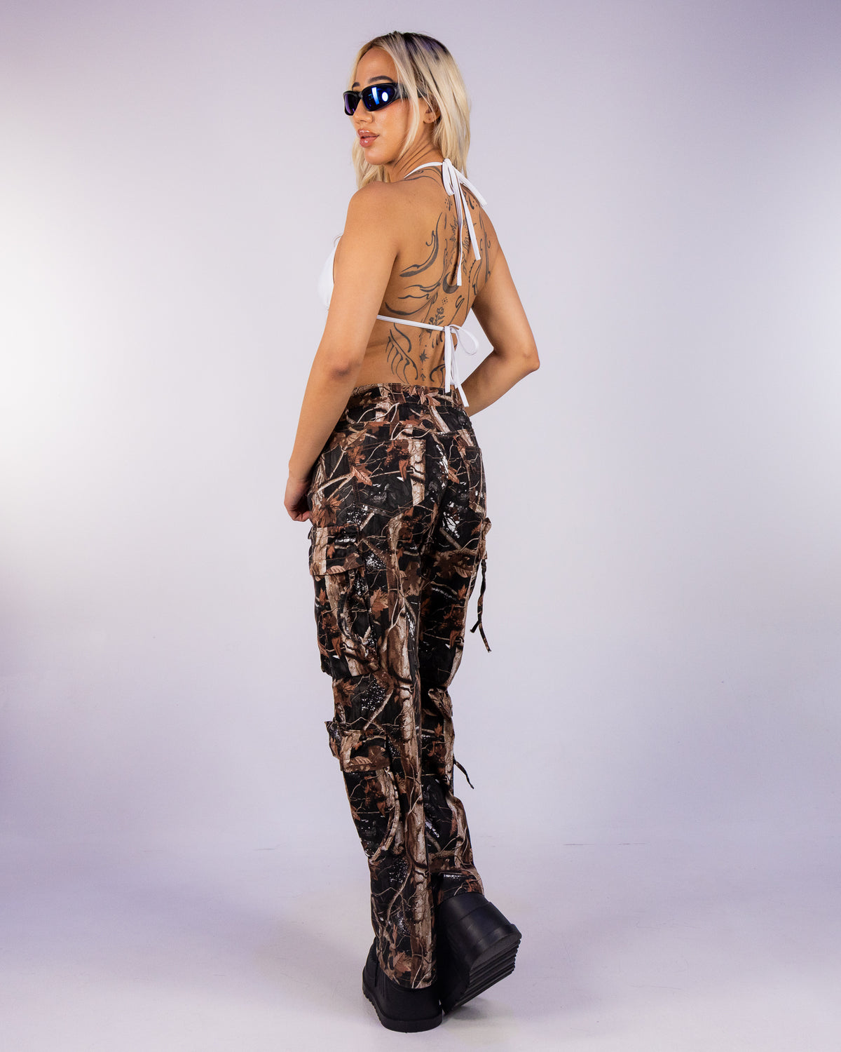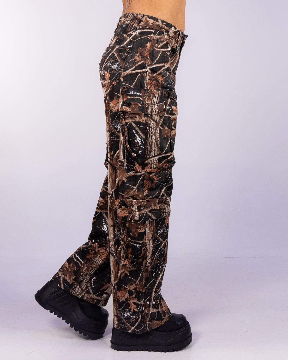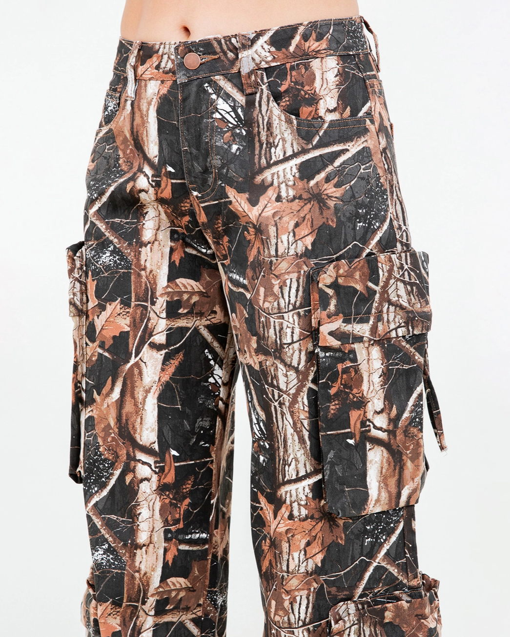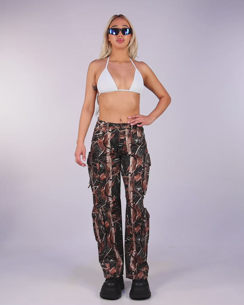 The button waist closure ensures a snug, comfortable fit, while the slim straight cut flatters your silhouette with a modern, daring look. Crafted in bold camouflage print, these pants effortlessly blend rugged toughness with urban chic. Perfect for everyday wear or easily amped up to complete your outfit for any rave or music festival, these joggers make a statement wherever you go.