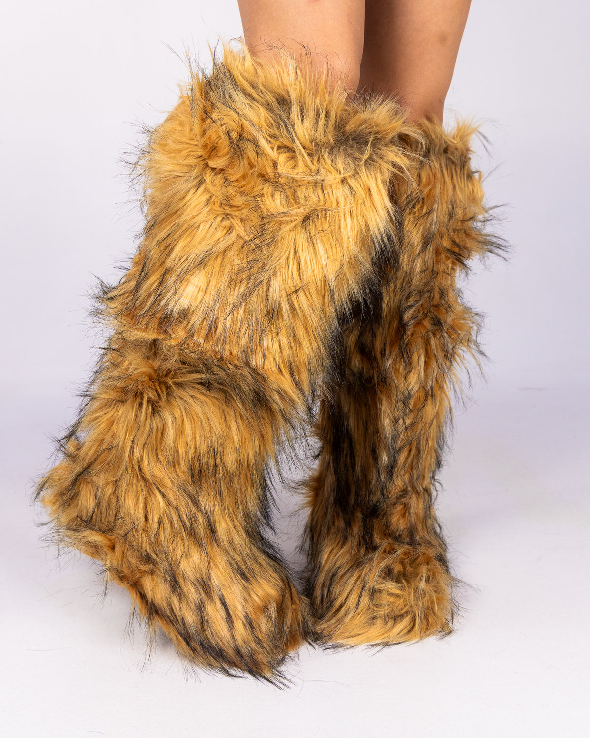Step into boldness with our Black Animalistic Women's Faux Fur Platform Boots—designed for those who dare to stand out. Featuring plush faux fur in a striking animal print pattern, these boots combine edgy style with plush comfort. The towering platform sole not only adds height but also commands attention wherever you go. Perfect for making a fearless statement at festivals, nights out, or any adventure that calls for unapologetic flair.