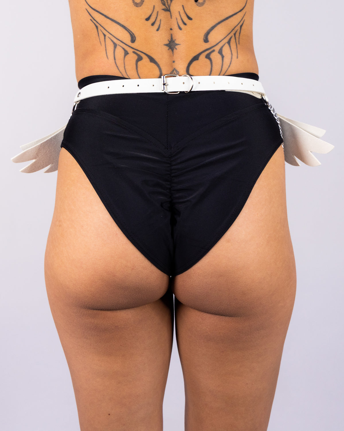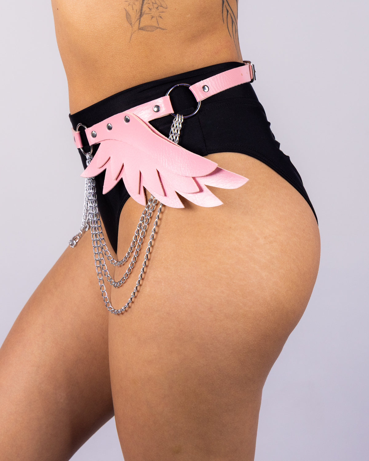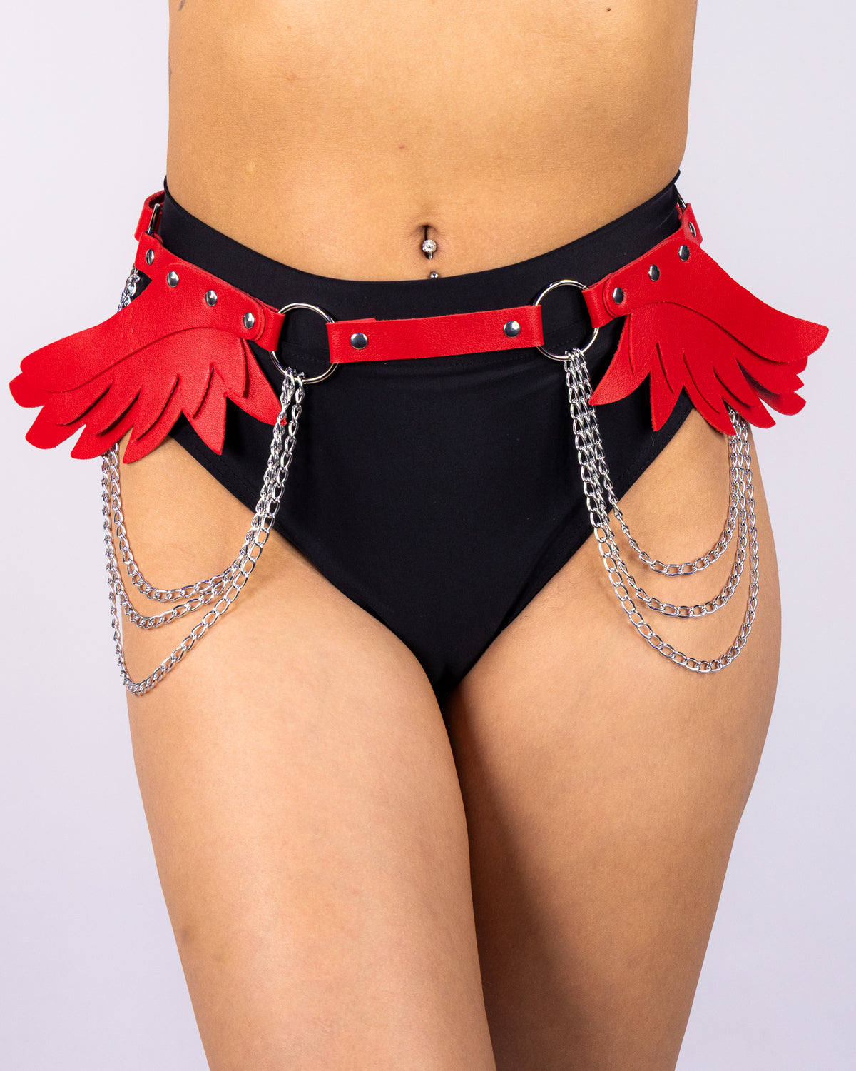Elevate your rave or festival look with the Heaven Sent Unisex Angel Wing Chained Belt, designed to turn heads from dusk till dawn. Crafted with black faux leather and chains, this belt with angel wings brings a daring edge to your outfit.