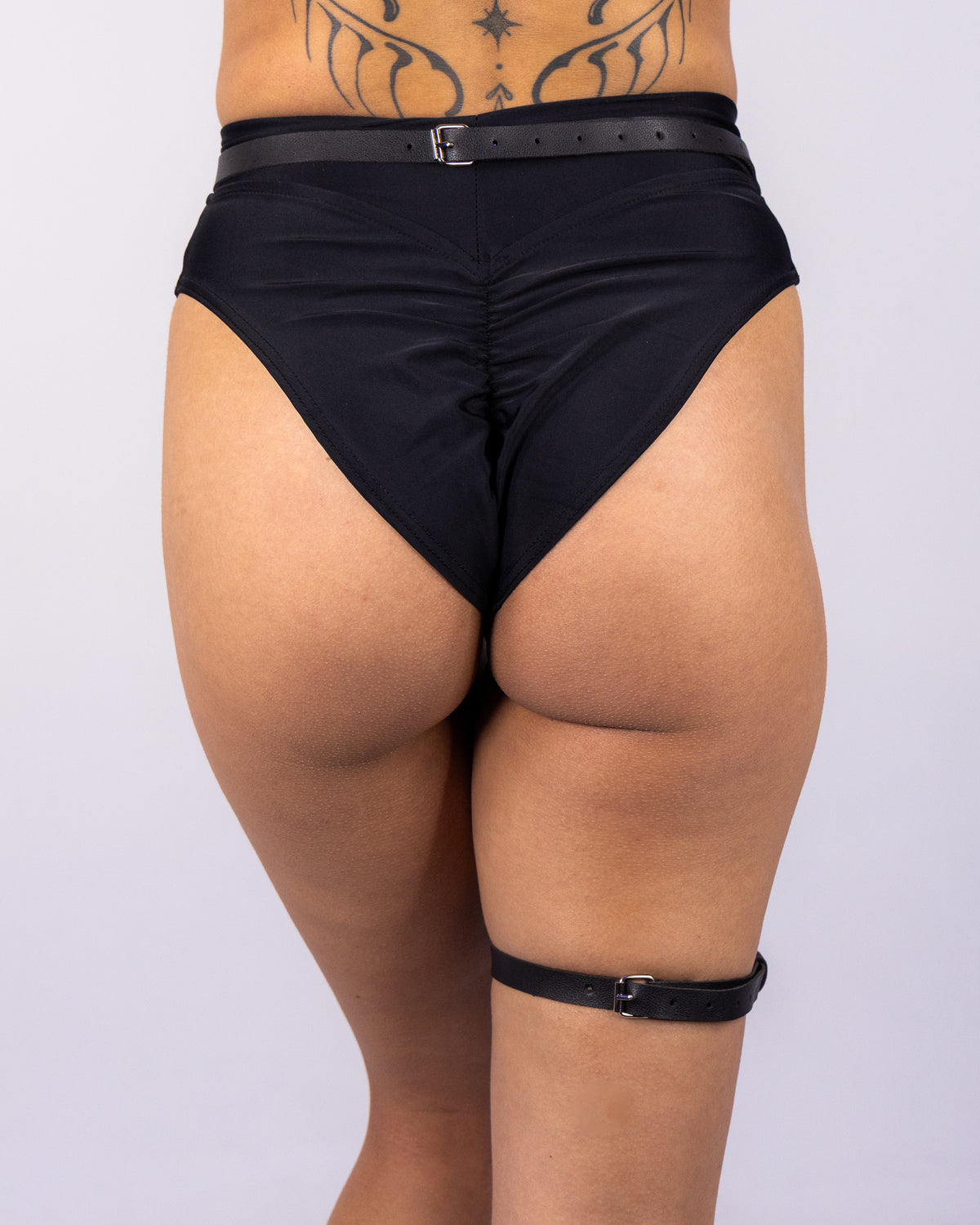 Elevate your rave or festival look with the Hug Me Close Unisex Black Belt With Leg Garter, designed to turn heads from dusk till dawn. Crafted with black faux leather and features an attached leg garter, this belt brings a daring edge to your outfit.