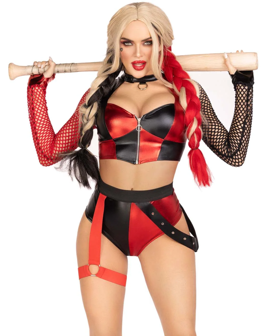 • Fit and Style: The ultimate bad girl, this sexy Halloween costume features a daring zip-up crop top with choker detail and fishnet gloved sleeves, and when paired with the cheeky bottoms, this is a must-have cosplay costume look
