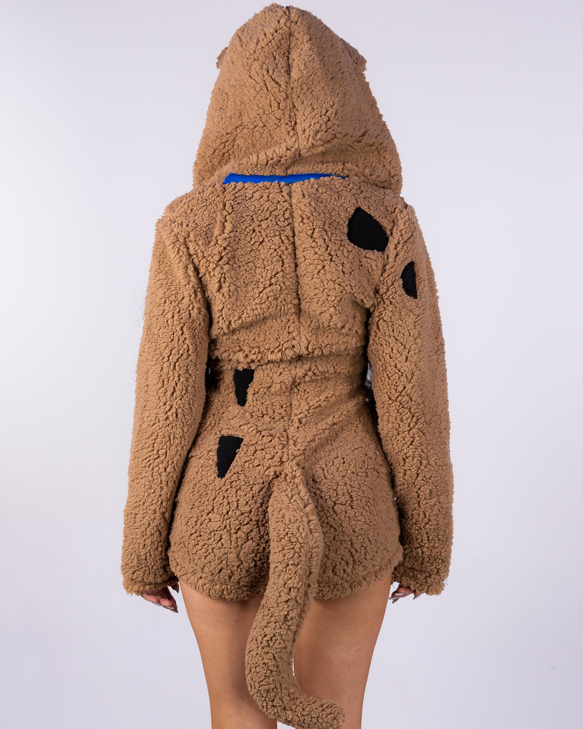 Keep cozy while you explore the creepy castle in the ultra-soft fleece, long sleeves and fuzzy ear hood. The plunging zipper front and cheeky shorts length add an eye-catching element to this iconic cartoon pup costume.
