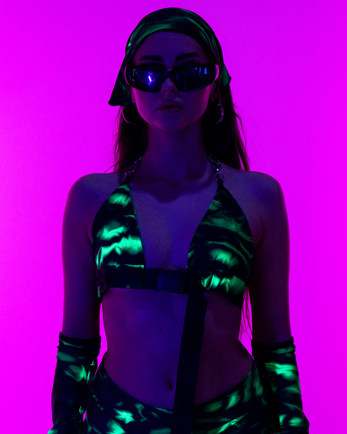 Get hypnotized in the Hypno Haze Collection - a Rave Wonderland exclusive! Get ready for some headbanger vibes and reach new heights with this mesmerizing green and black print!