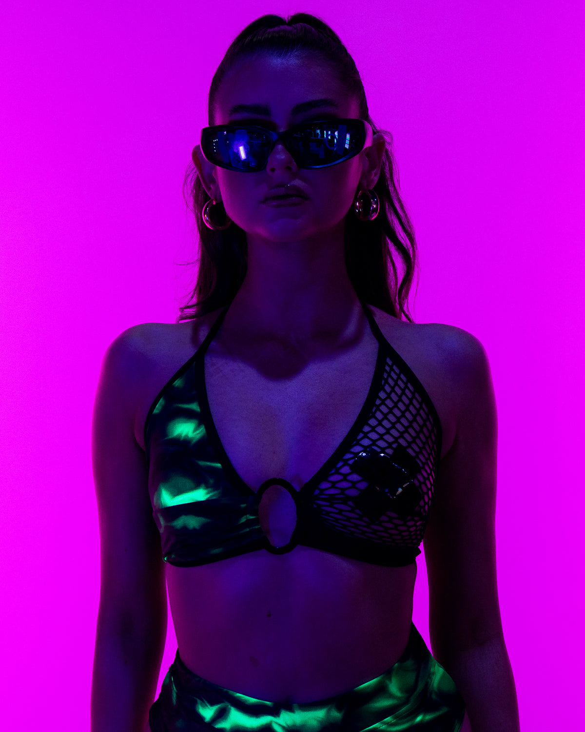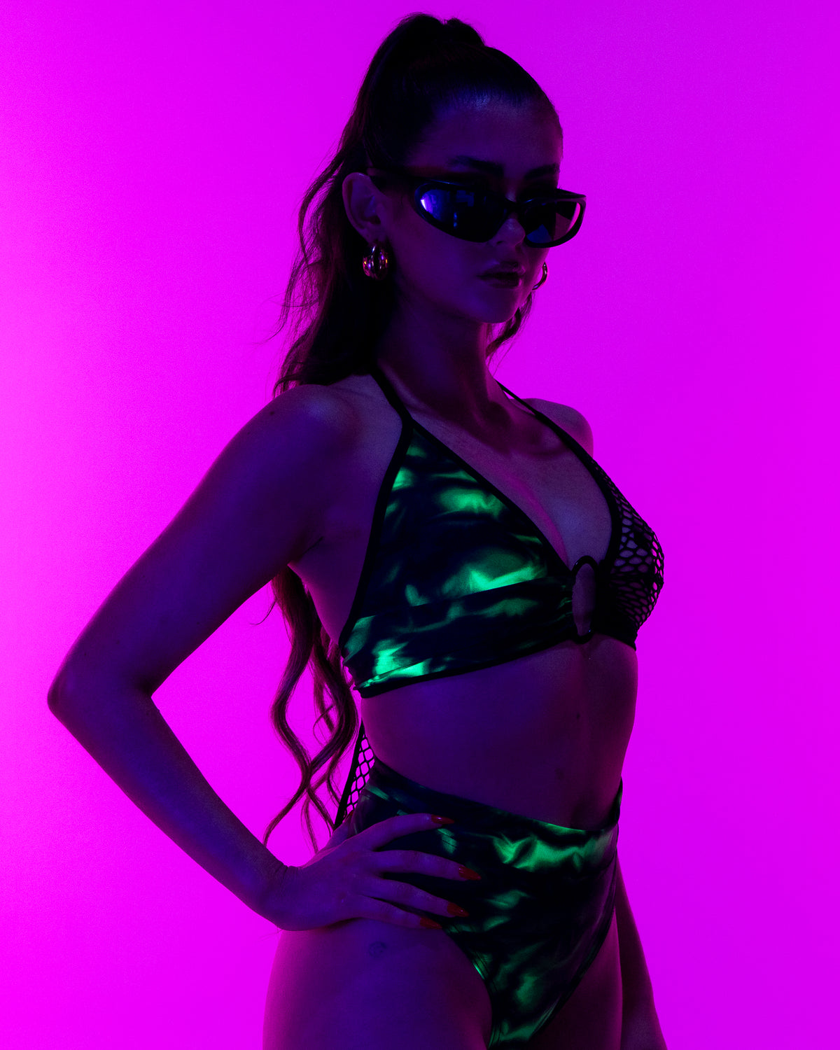 Get hypnotized in the Hypno Haze Collection - a Rave Wonderland exclusive! Get ready for some headbanger vibes and reach new heights with this mesmerizing green and black print!