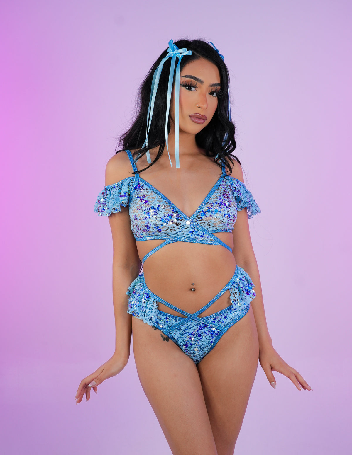 Pastel Blue Sequin Lace Bottom