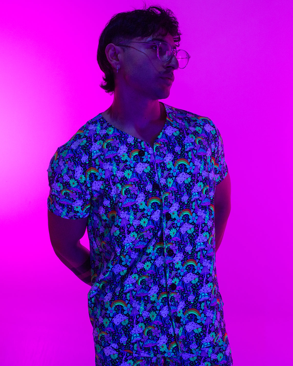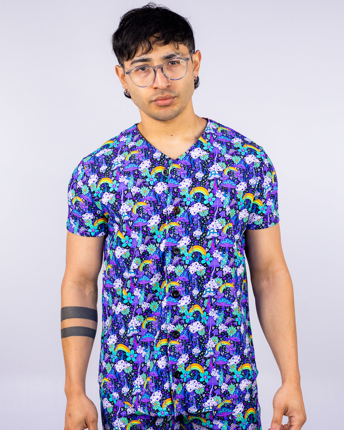 This Dreamworld Jersey is made of super soft and breathable allover print fabric and button closures in the front.