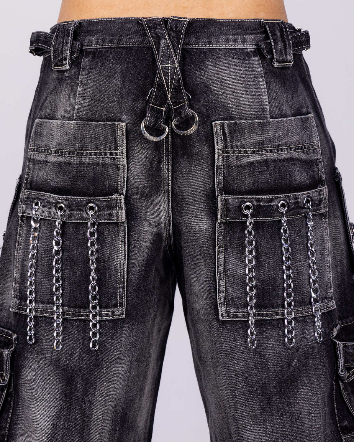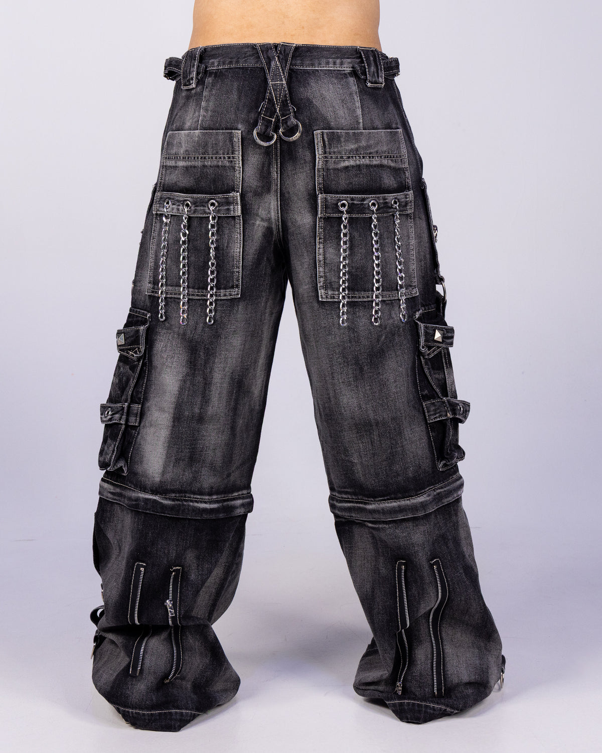 Tripp NYC Zip-Off Lock Up Storm Wash Gray Denim Unisex Pant