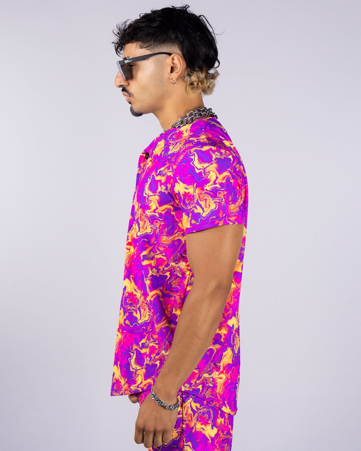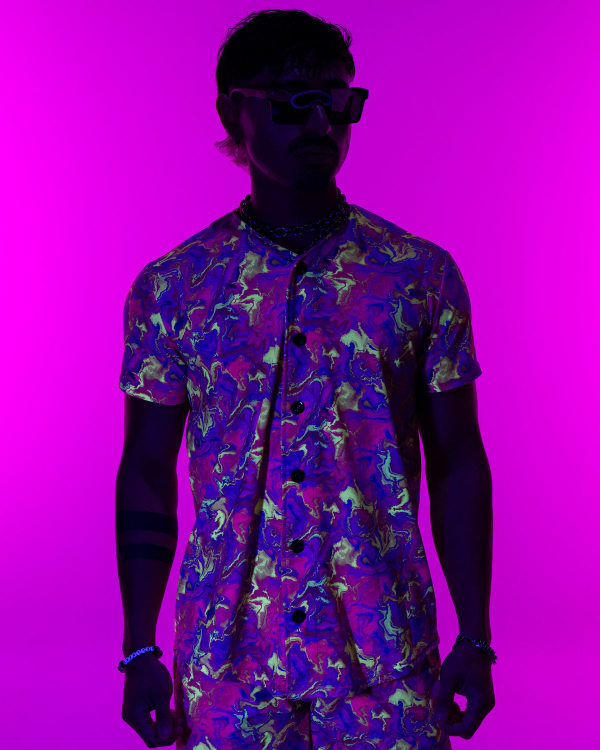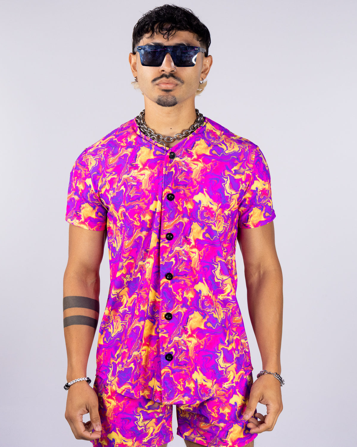 This Ultraviolet Vision Jersey is made of super soft and breathable allover print fabric and button closures in the front! Pair with the Ultraviolet Vision Shorts for the matching fit or your favorite shorts or joggers!