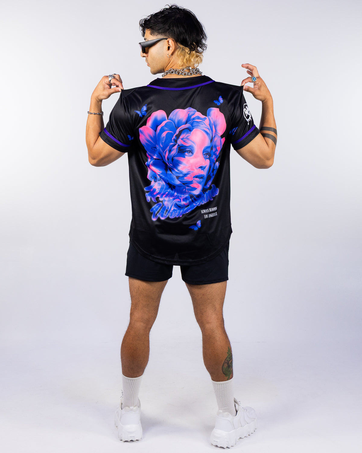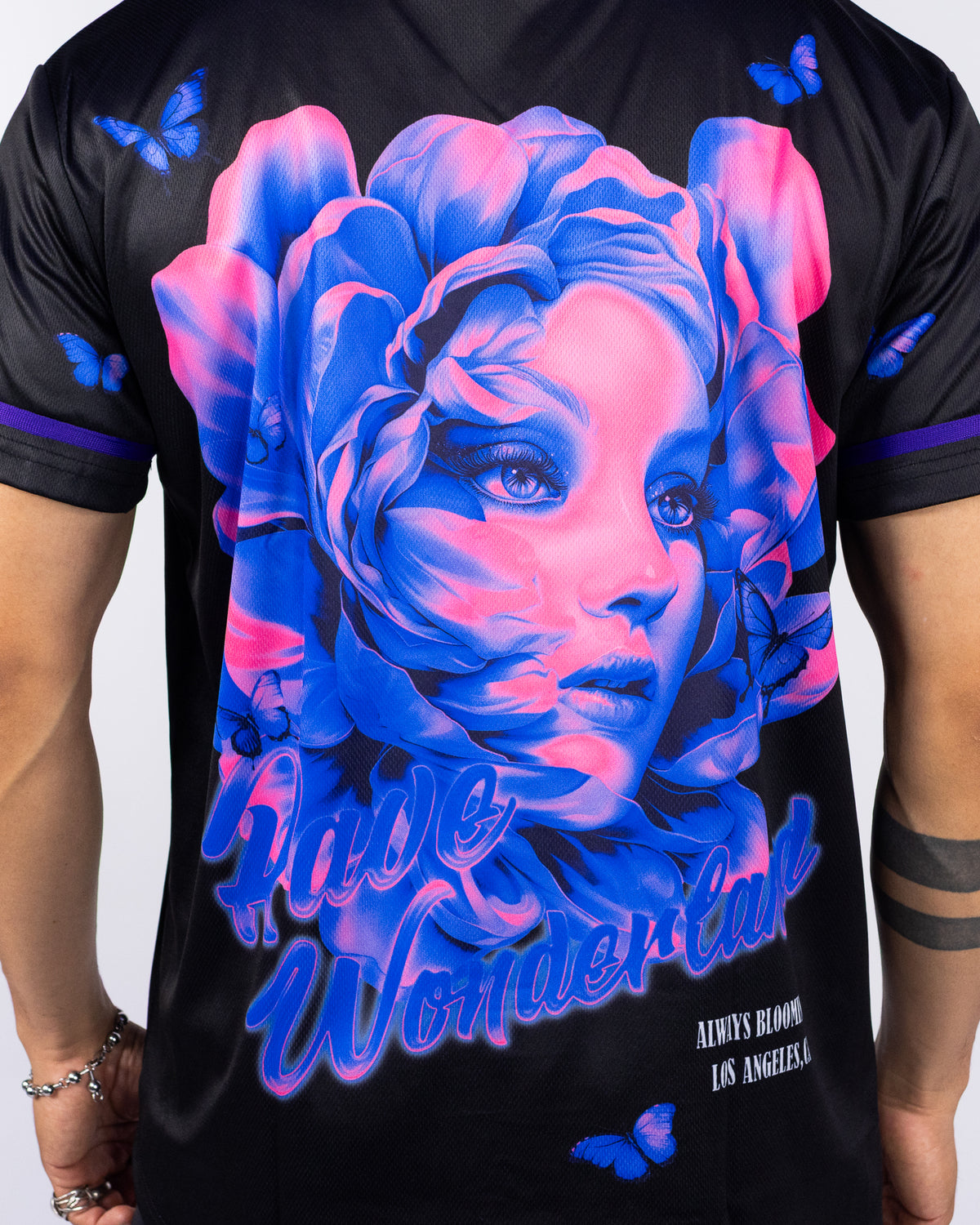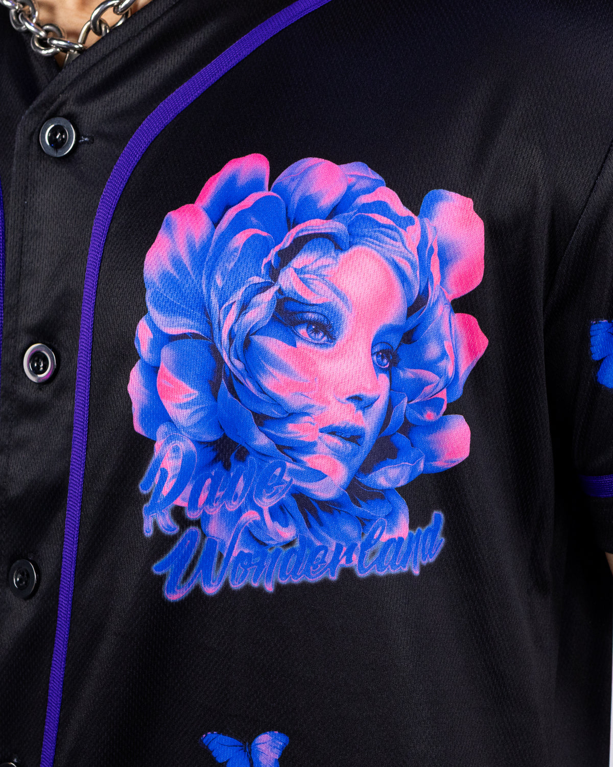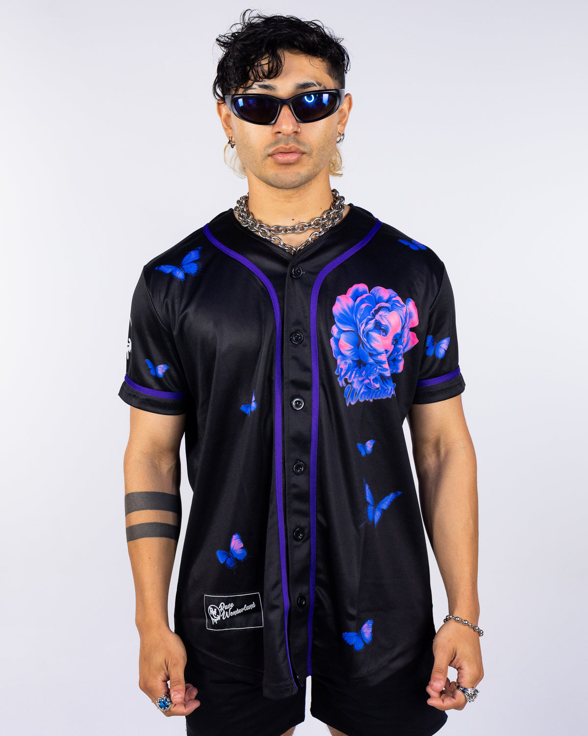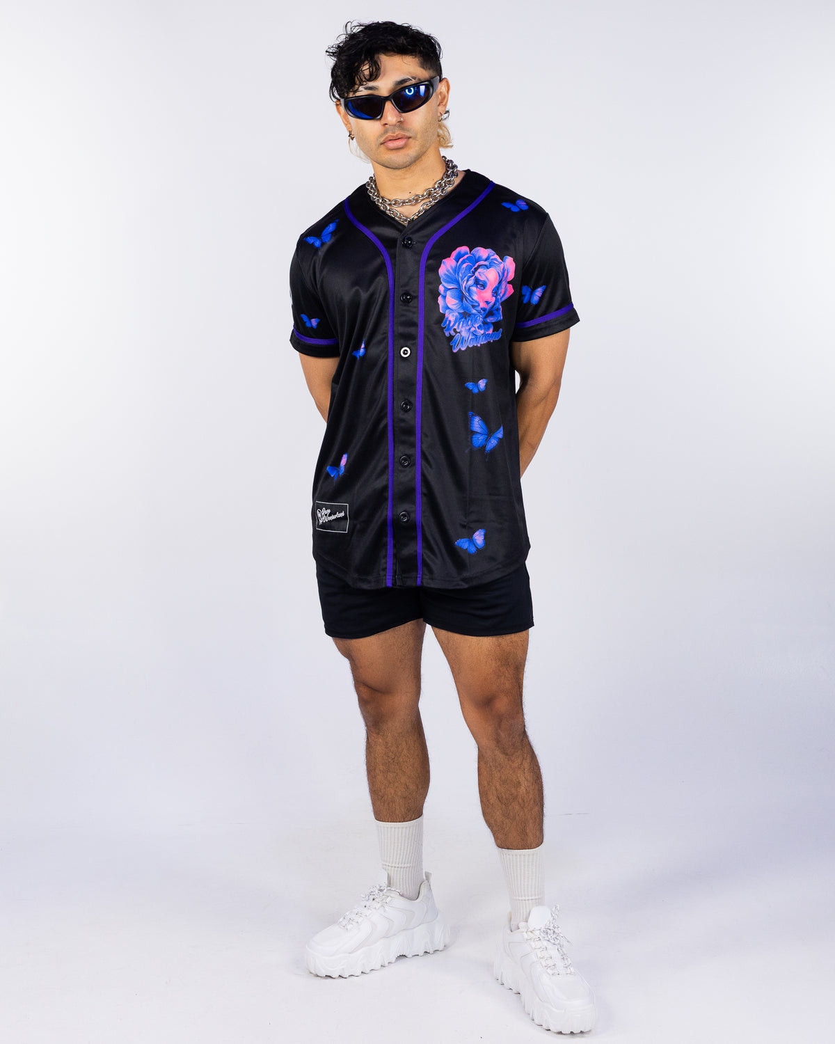 Elevate your rave game with our Night Blossom Men's Baseball Jersey! Perfect for dancing from dusk til dawn, this bold and daring button-up jersey is perfect for music festivals and adventurous nights out at the underground. Featuring a stunning flower and butterfly graphic design, this jersey will definitely make you stand out from the crowd. Get ready to turn heads and hit the dance floor in style!