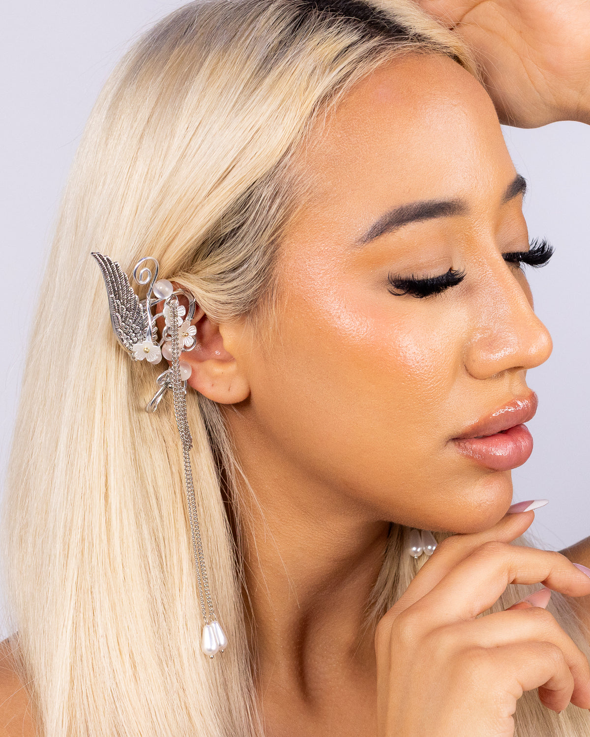 Transform any outfit into a magical masterpiece with the ethereal elegance of our Elf Wing Women's Ear Cuffs. These exquisite ear cuffs don't need pierced ears! Featuring elf ear with wings and resin flowers, these earrings enhance your cosplay ensemble.
