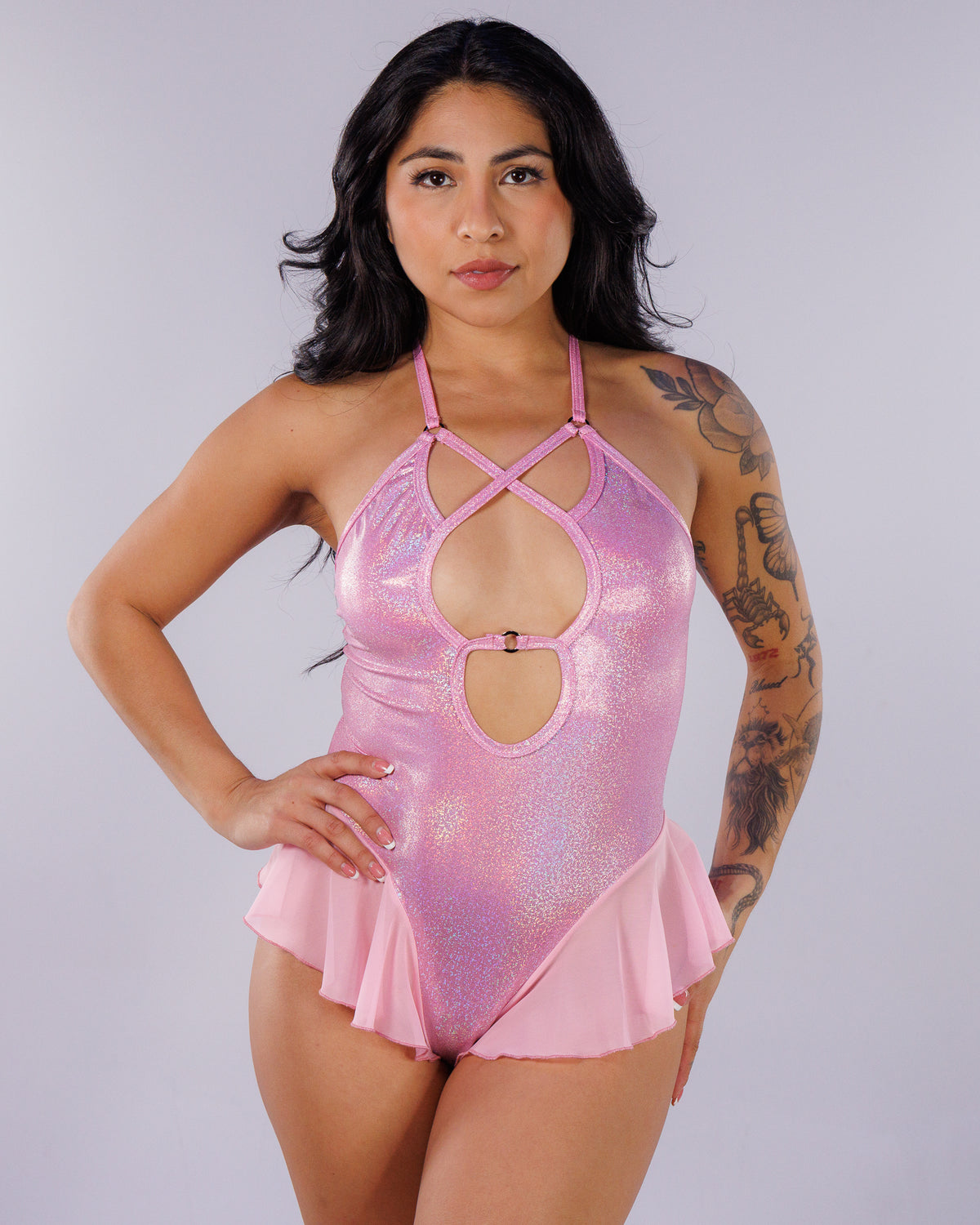 Pink Cosmic Shimmer Women's Halter Ballerina Bodysuit