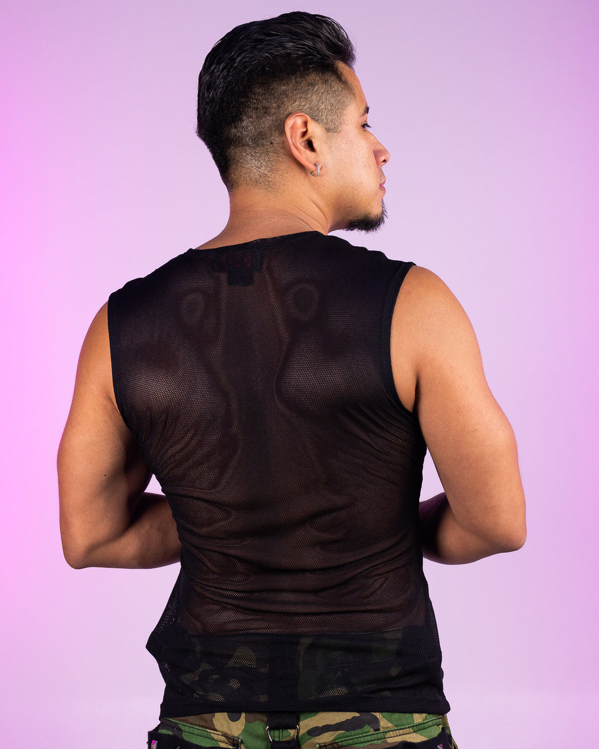 Tripp NYC Unisex Black Fishnet Muscle Tank