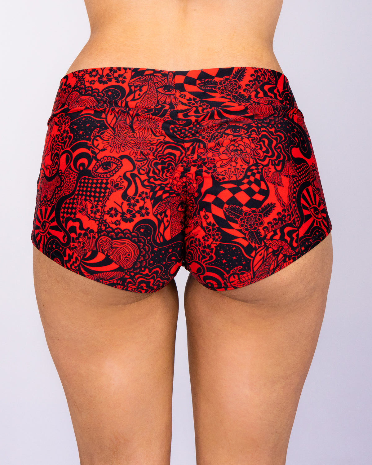 The Crimson Zenith Boy Shorts are made of soft stretchy material and features a scrunch back cut that is ultra flattering on the booty! These shorts fall just below the booty cheeks so it's perfect if you're looking for a little more coverage!