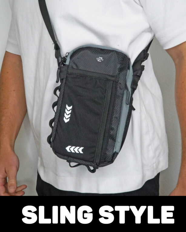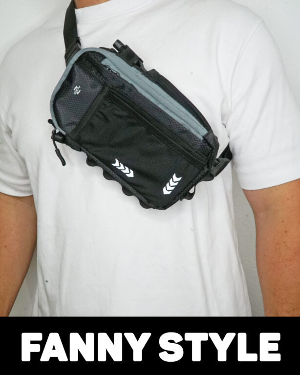 Introducing the first-ever Modular Fanny Sling Pack. Extend the straps and wear this anti-theft pack as a sling bag. Or tighten the straps, move the clips, and wear this pack in sports mode as a crossbody-fanny.