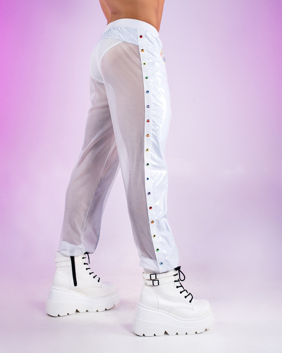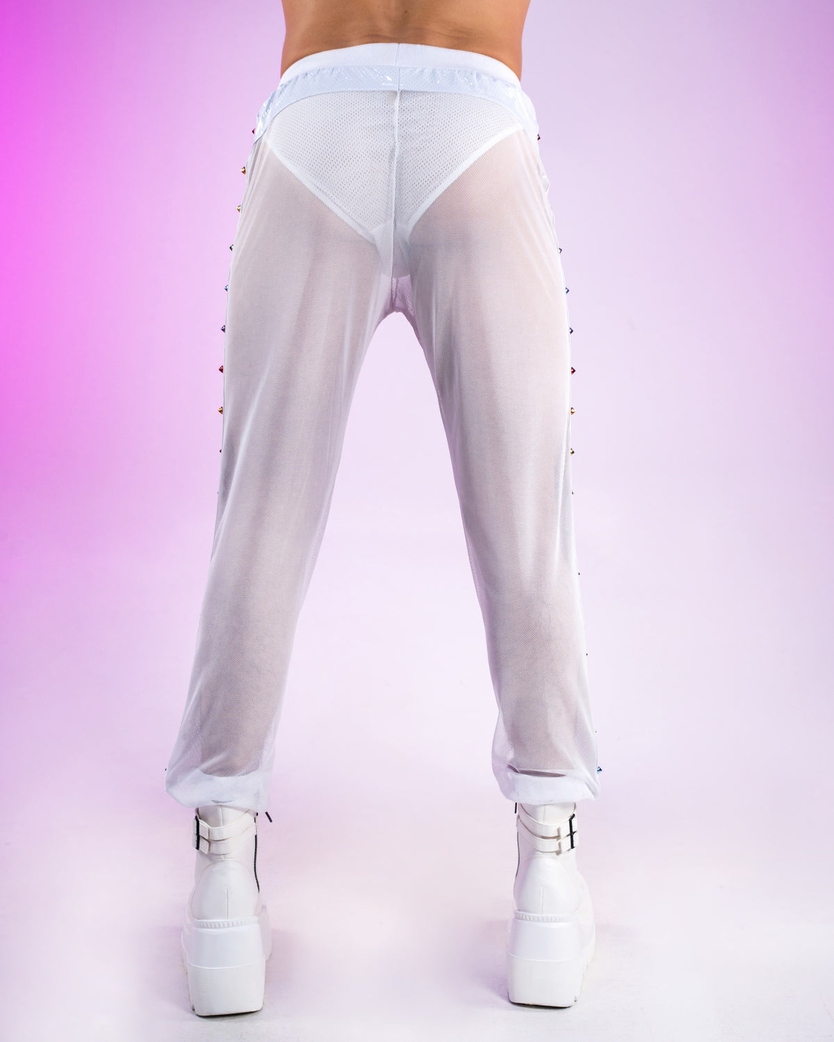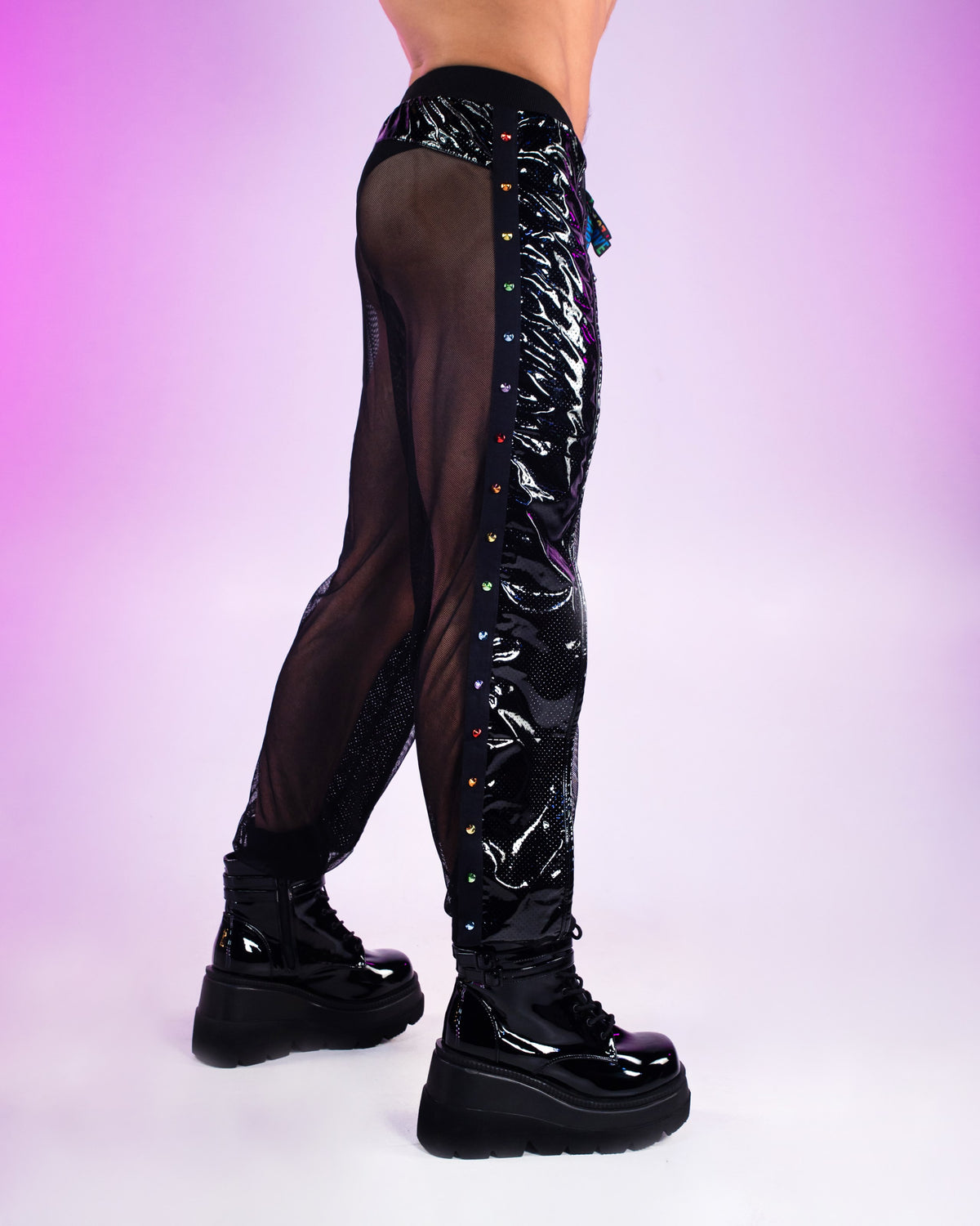 Rainbow Love Pride Vinyl Mesh Joggers w/ Stud Details