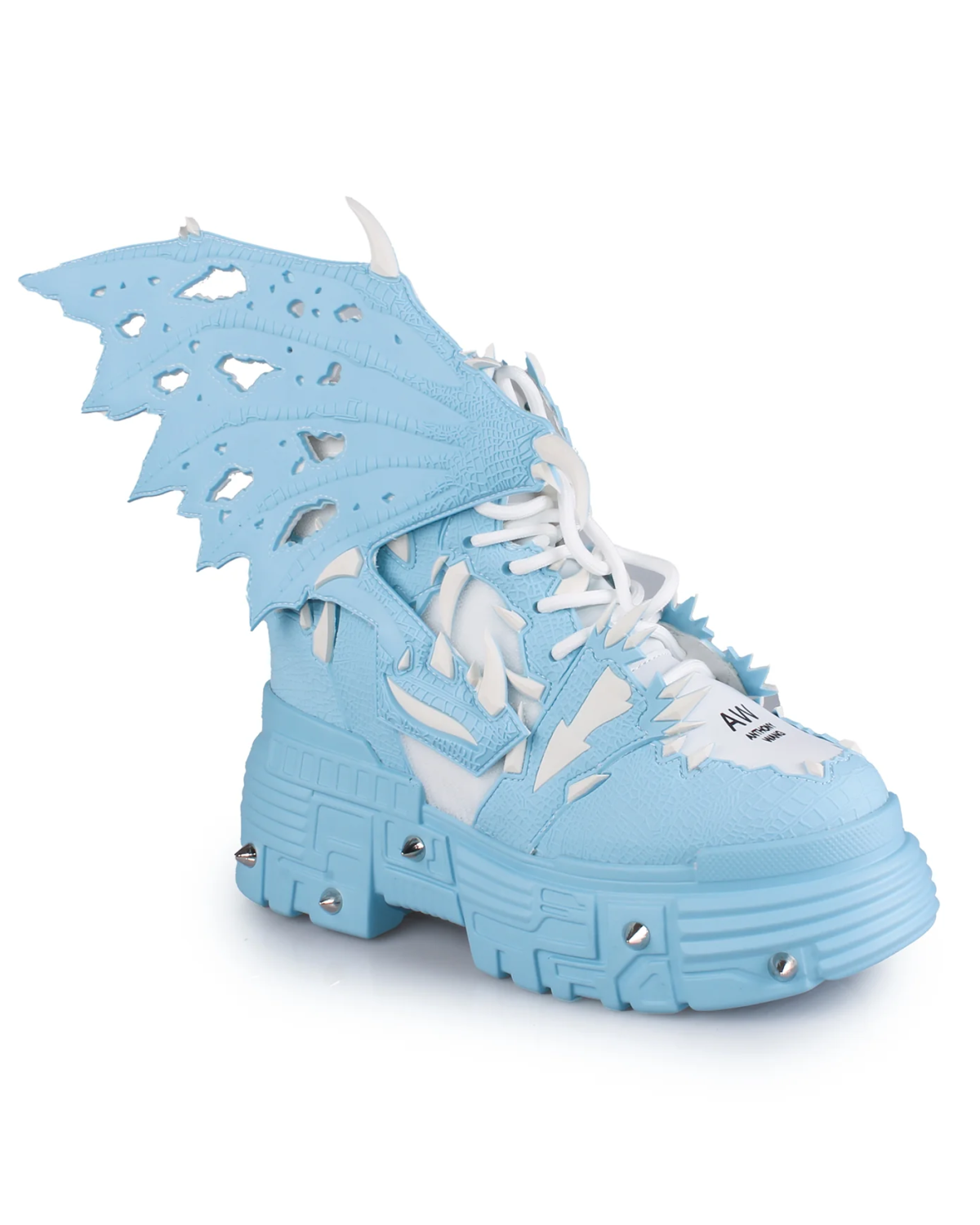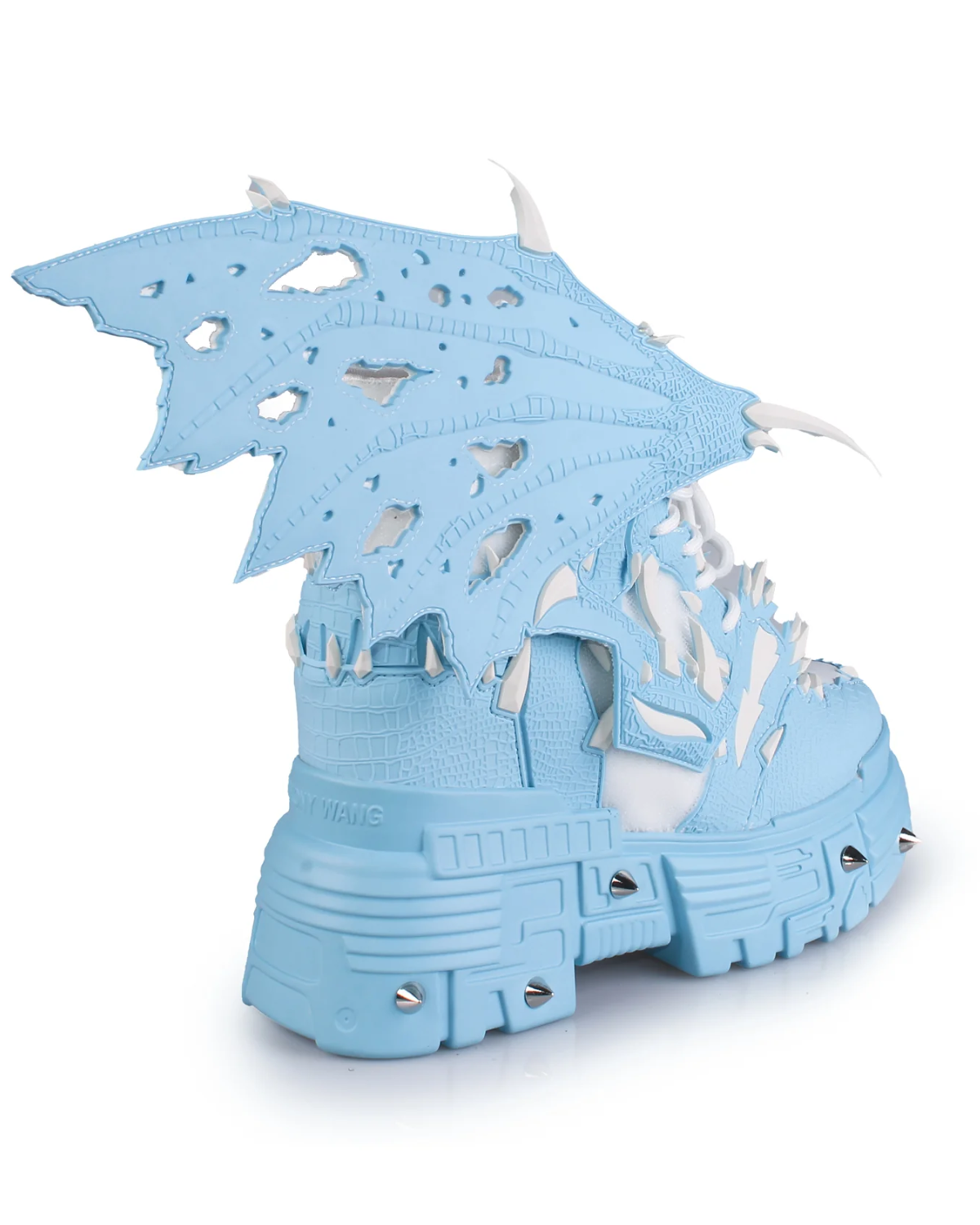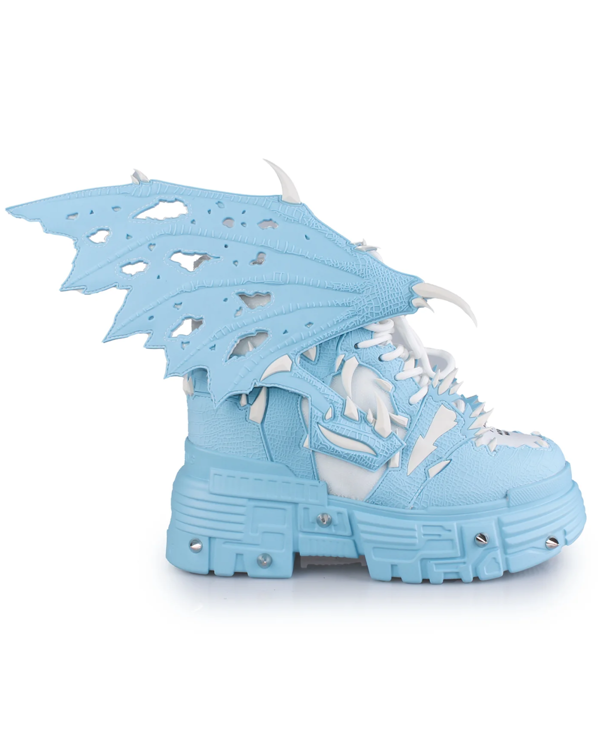 Step into bold style with the Blue Apple Women's Dragon Wedge Boots. Crafted from vegan leather with a durable rubber outsole, these sneakers feature a fierce tooth and claw design and a removable wing Velcro decal for a custom look. The 2-inch platform and 2.5-inch hidden wedge deliver height and comfort, perfect for standing out at raves, festivals, or in your daily wardrobe. Unleash your daring side with a shoe that combines edgy design with lasting wear.