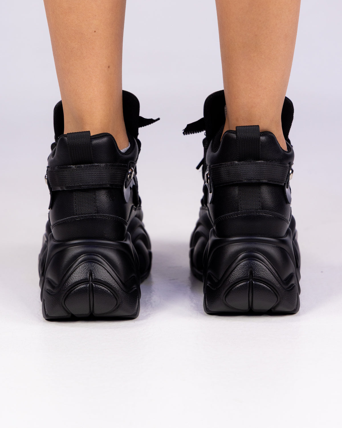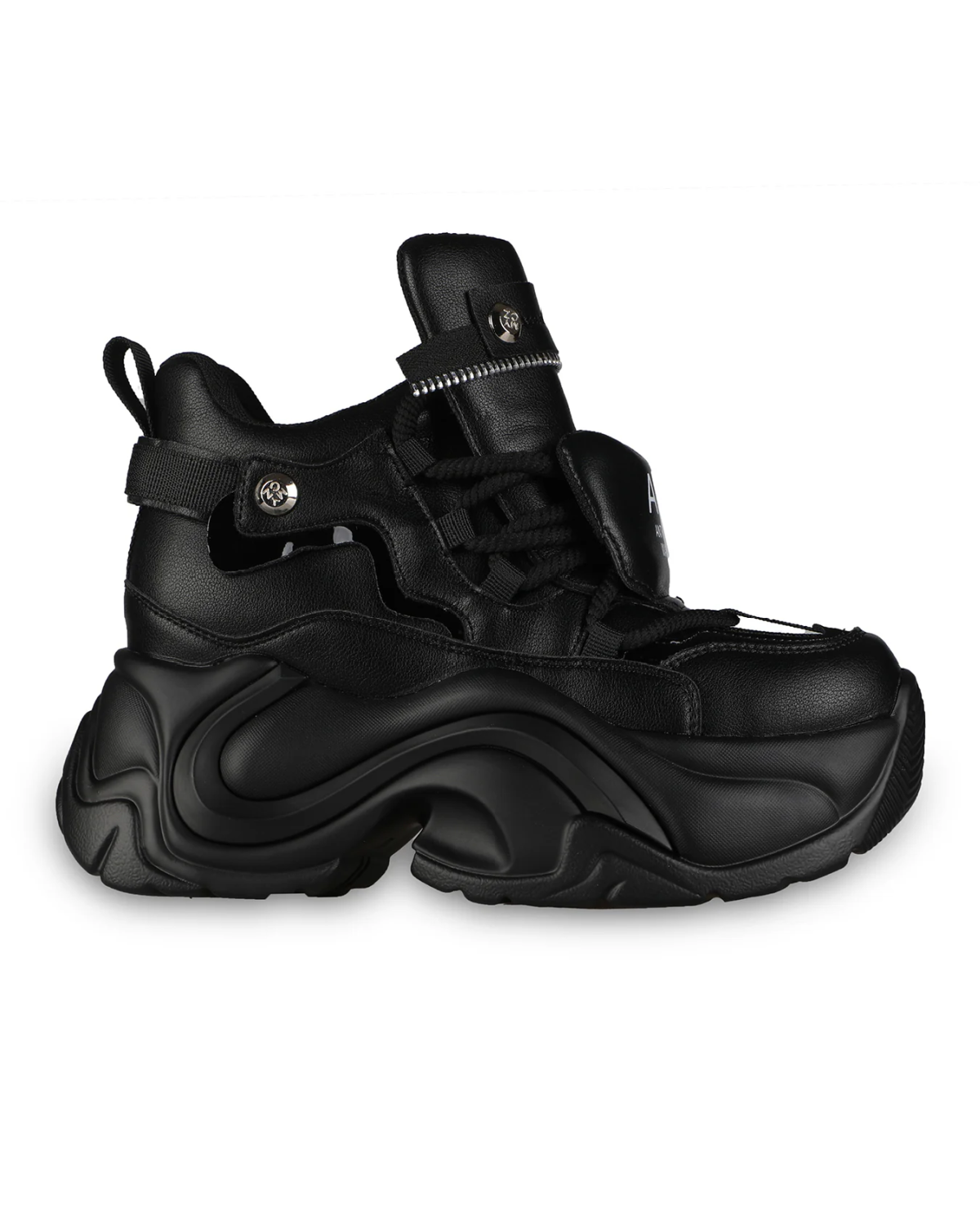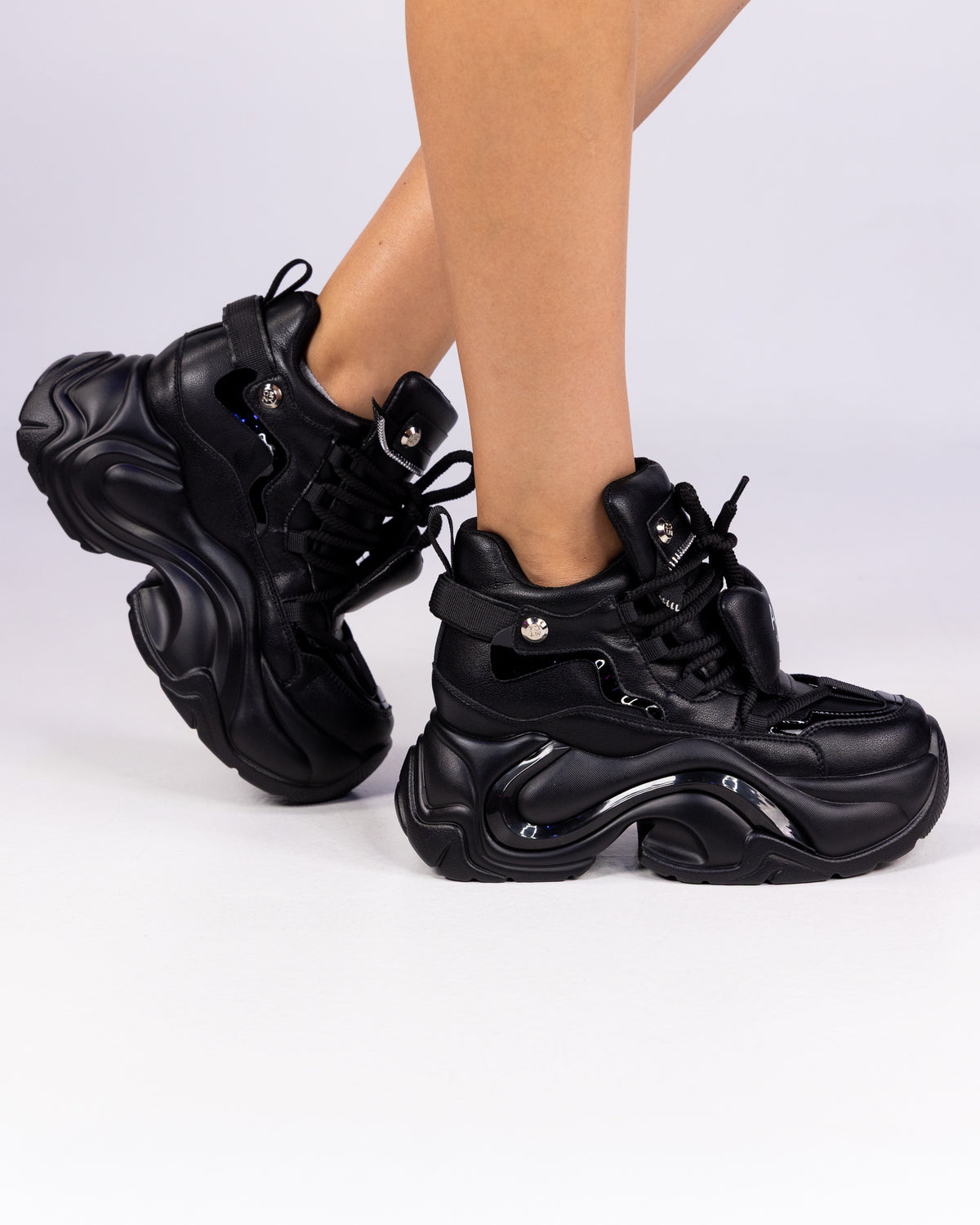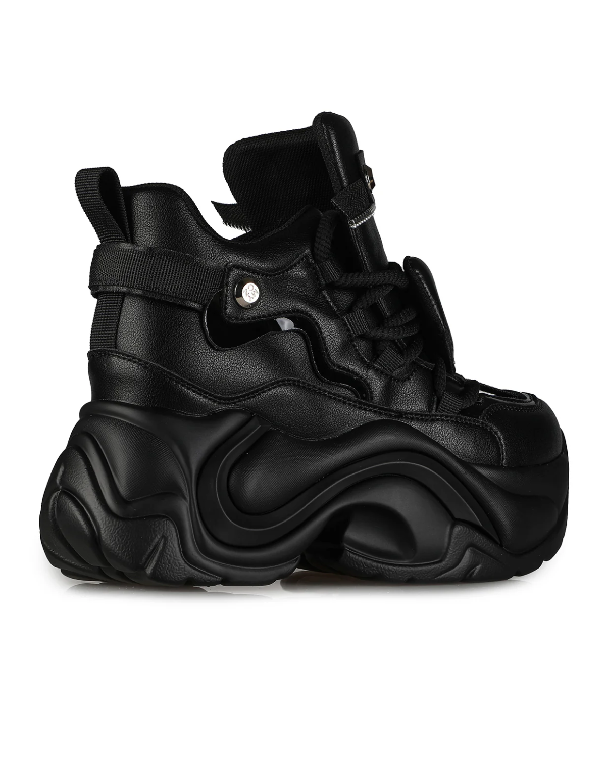 The chunky silhouette balances edgy fashion with support, making them ideal for all-night raves, music festivals, or injecting attitude into your daily outfits. Crafted in sleek black, they blend versatility with standout appeal. Step into fearless self-expression and command attention wherever your day or night takes you.