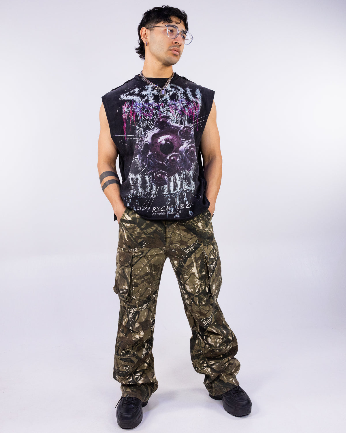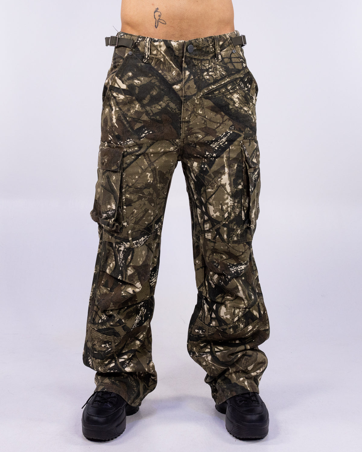 Experience comfort and style with the Baggy Camo Cargo - expertly designed in a printed duck camouflage canvas, featuring a relaxed fit and multiple spacious cargo pockets. Perfect for any season!