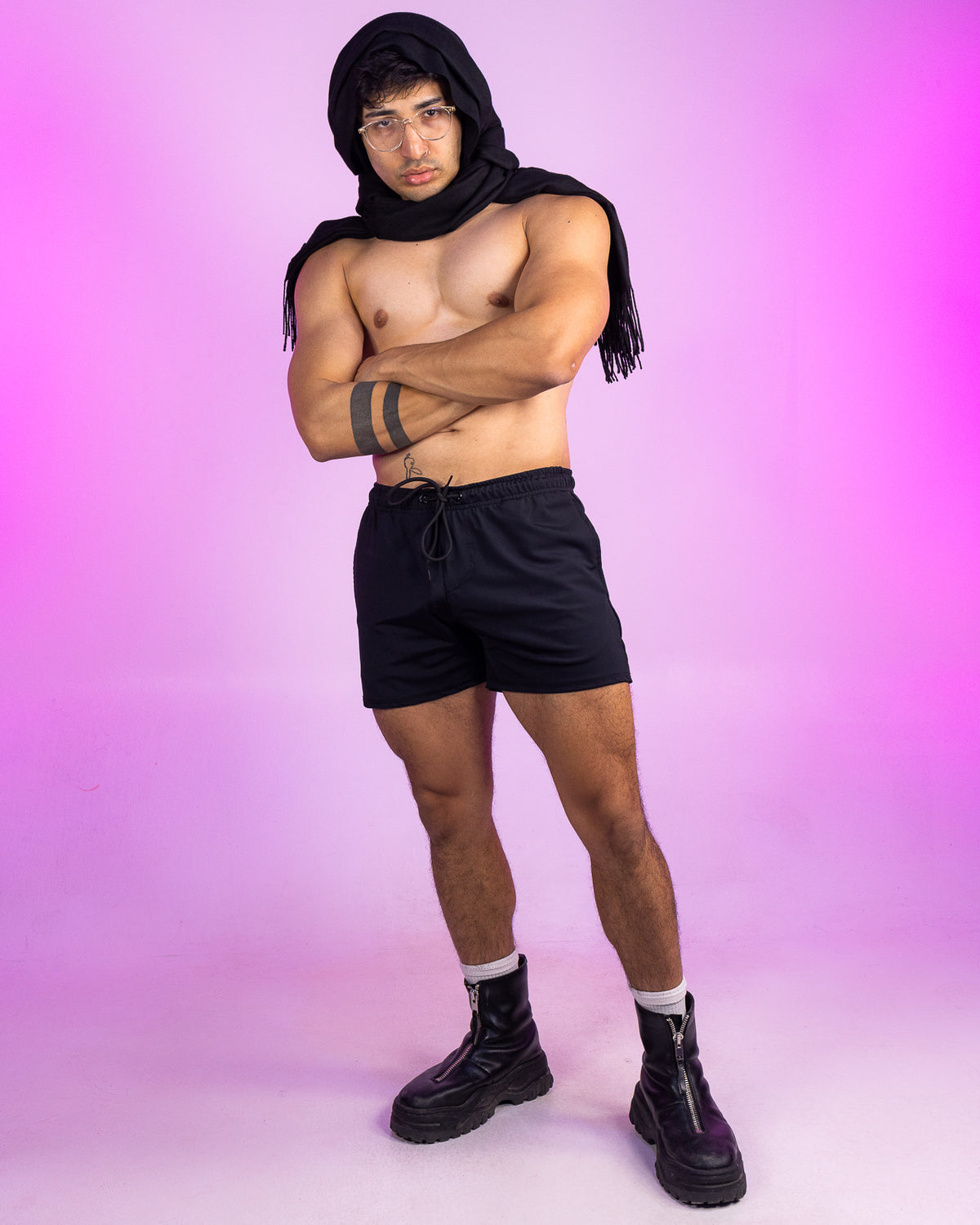 Solid Black Drawstring Shorts