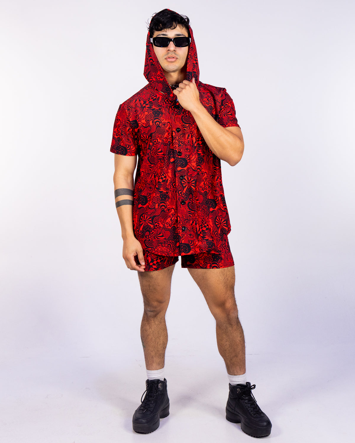 Trip out in the Crimson Zenith Collection - a Rave Wonderland exclusive! Get ready for some psychedelic vibes and reach new heights with this trippy doodle red & black print!