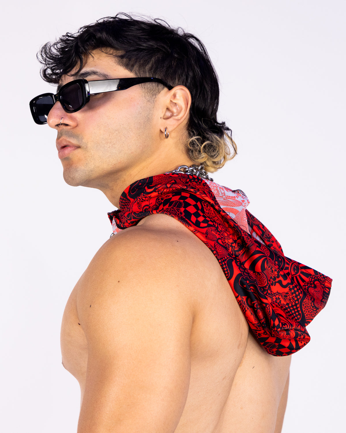 These Crimson Zenith Hood is the perfect accessory to protect your noggin while also taking your outfit to the next level! Go shirtless or pair it with the matching jersey. Search "Crimson Zenith" to put together an effortless rave fit!