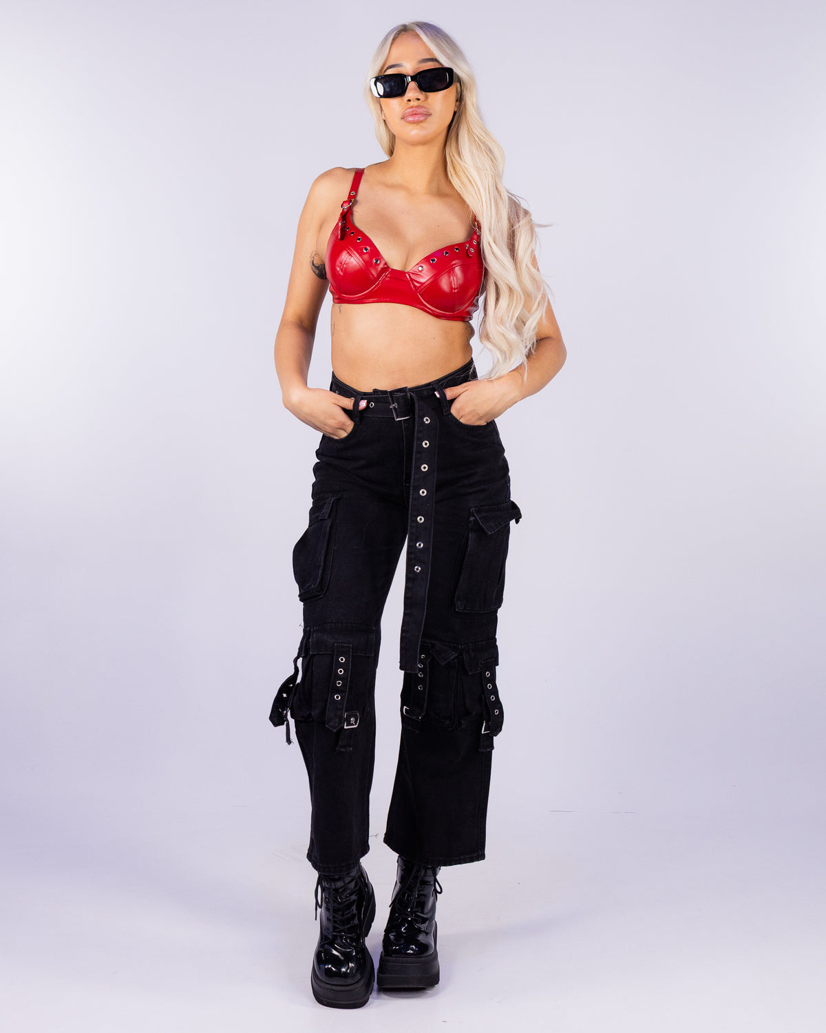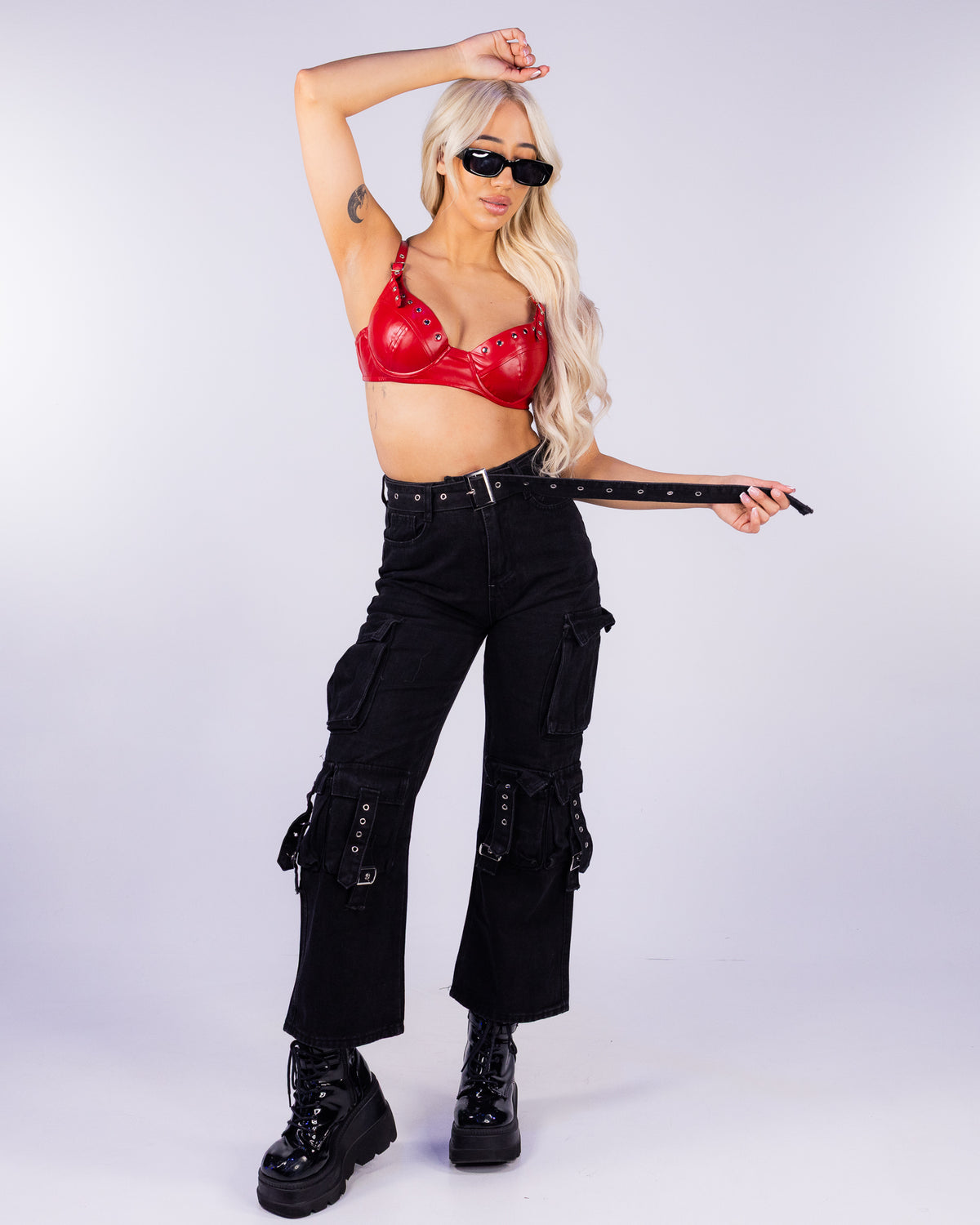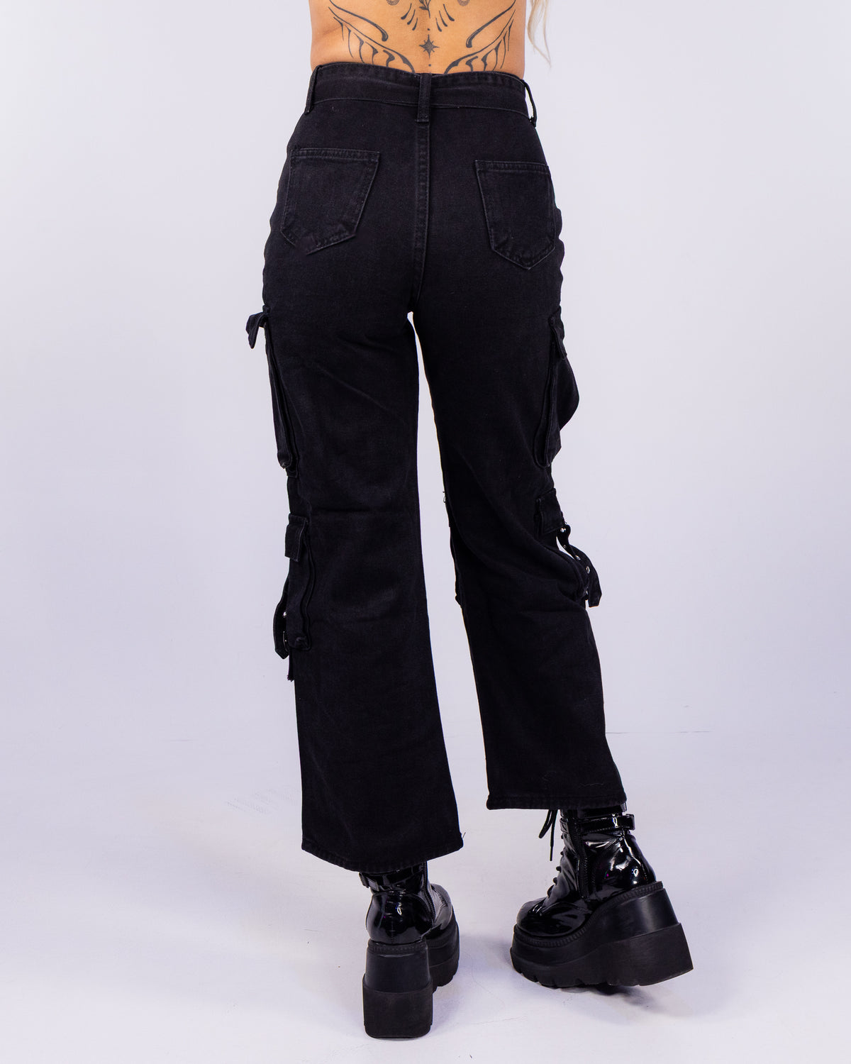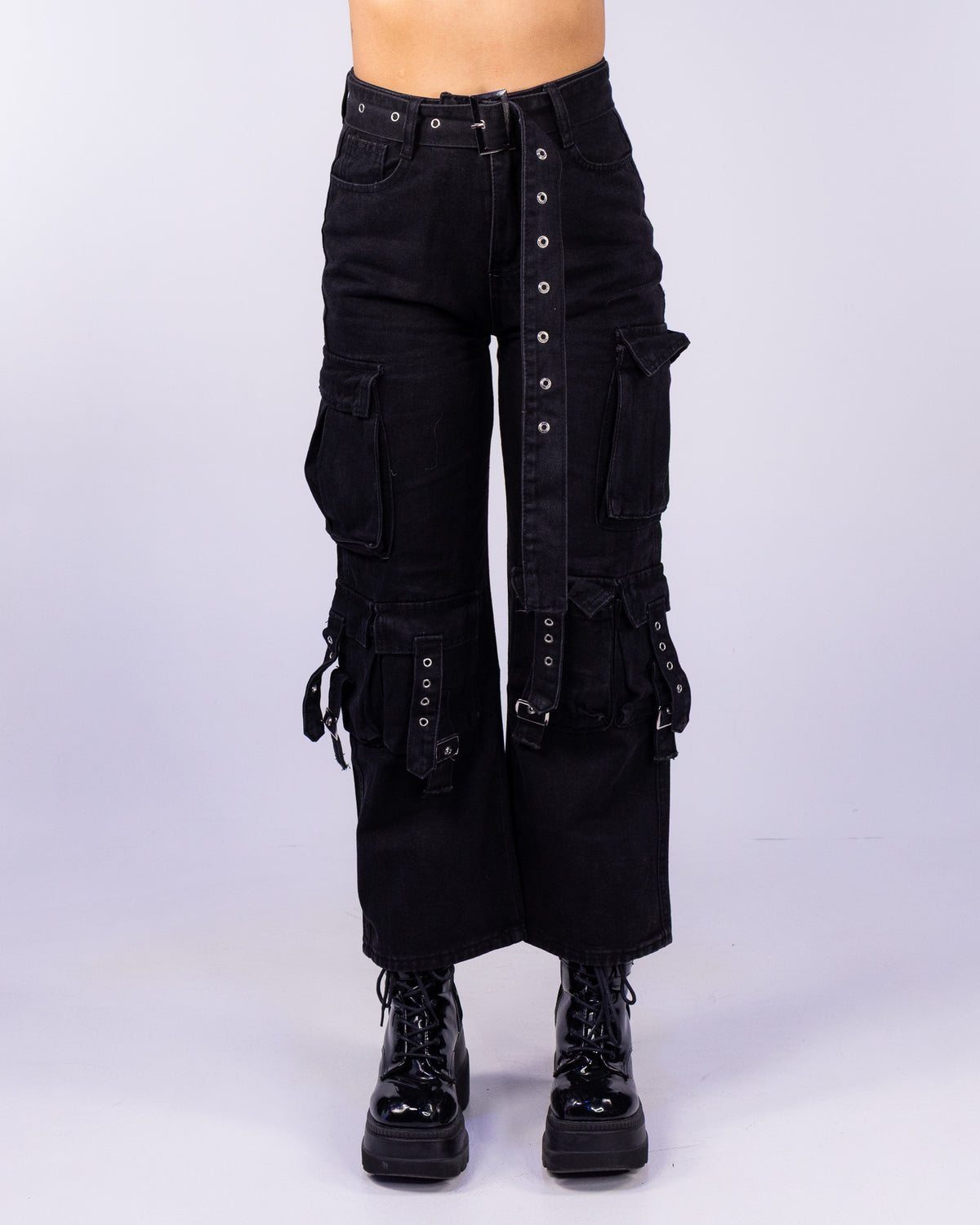 Step up your style game and conquer any obstacle with these Last Chance Women's Black Cargo Pants! Designed with an oversized, wide-leg fit and cargo pockets with belt buckle closure, these pants offer unbeatable comfort and functionality for all types of adventures.