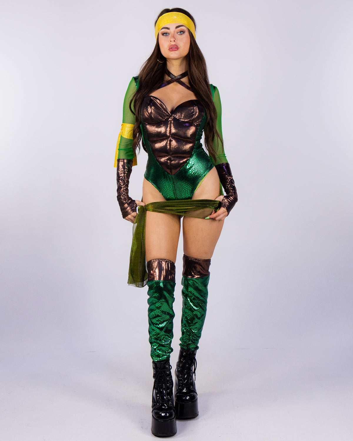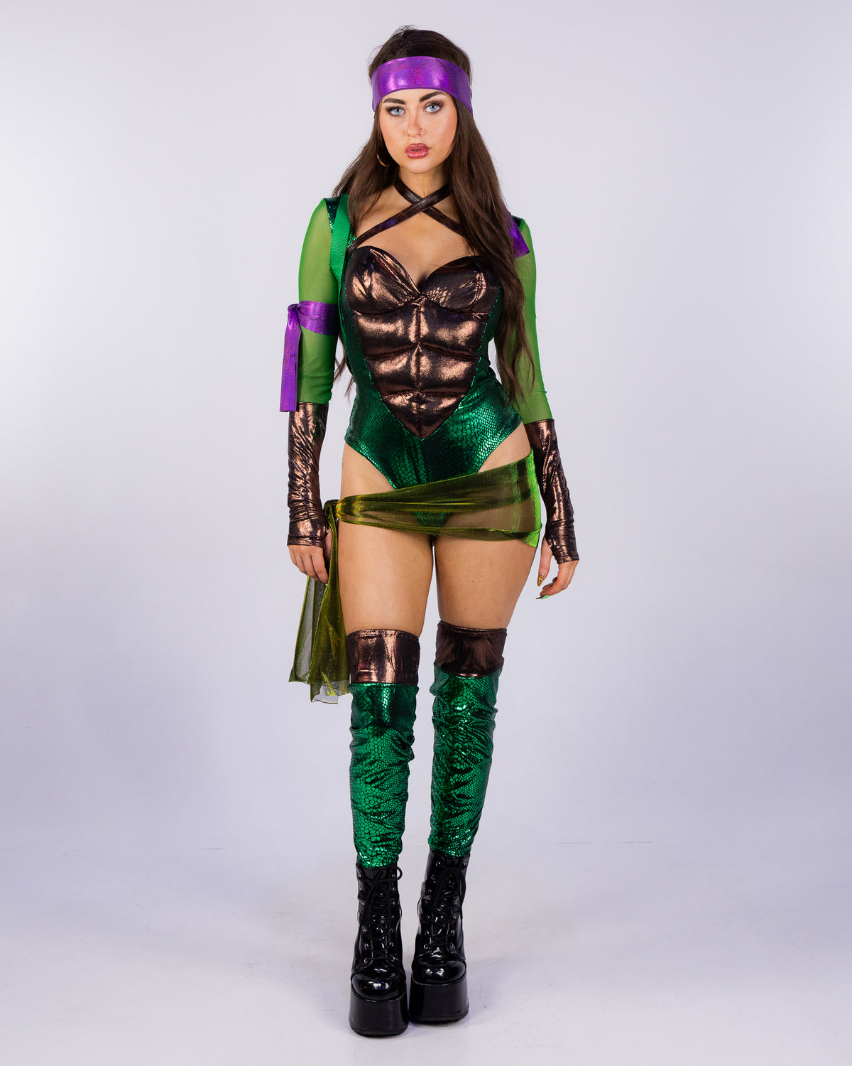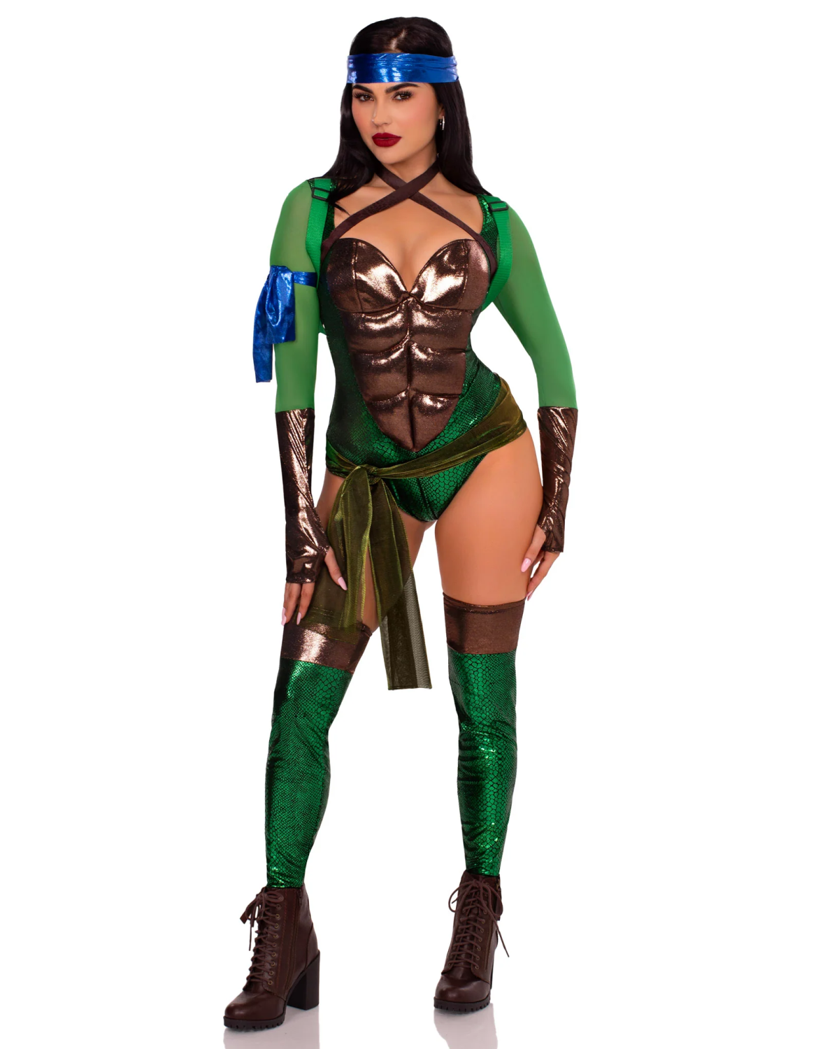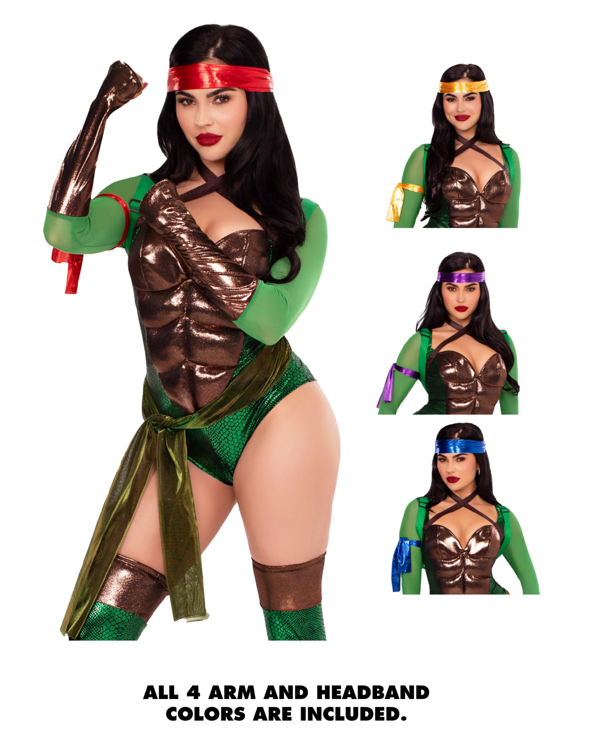 - Fit & Style: The sculpted bodysuit and playful accessories create a curve-loving silhouette with major throwback energy and undeniable turtle attitude