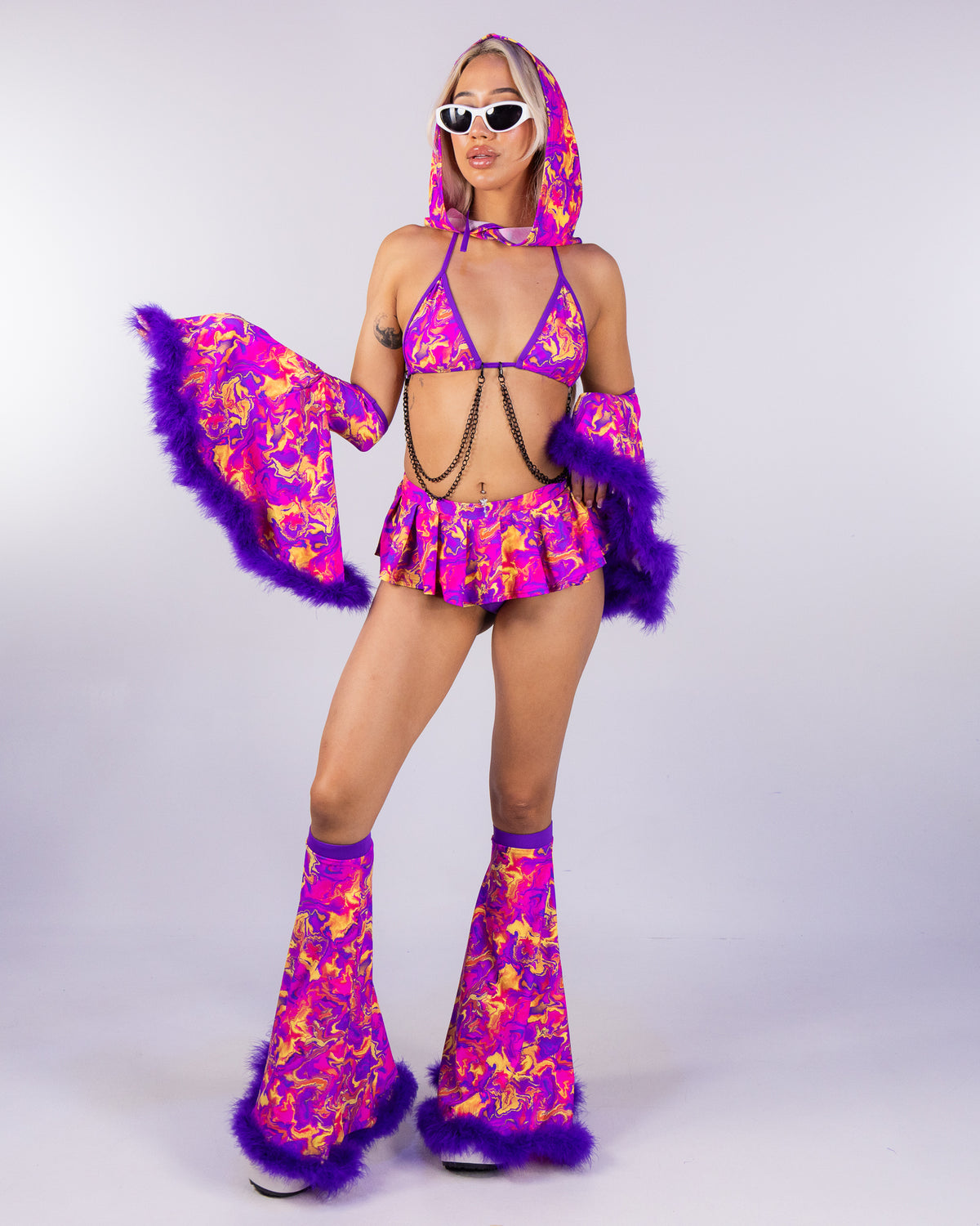The Ultraviolet Vision Micro Mini Skirt is perfect for showing off that booty and features attached purple underwear so you can comfortably dance all night long! Search "'Ultraviolet Vision" to find the perfect pieces to complete the fit!