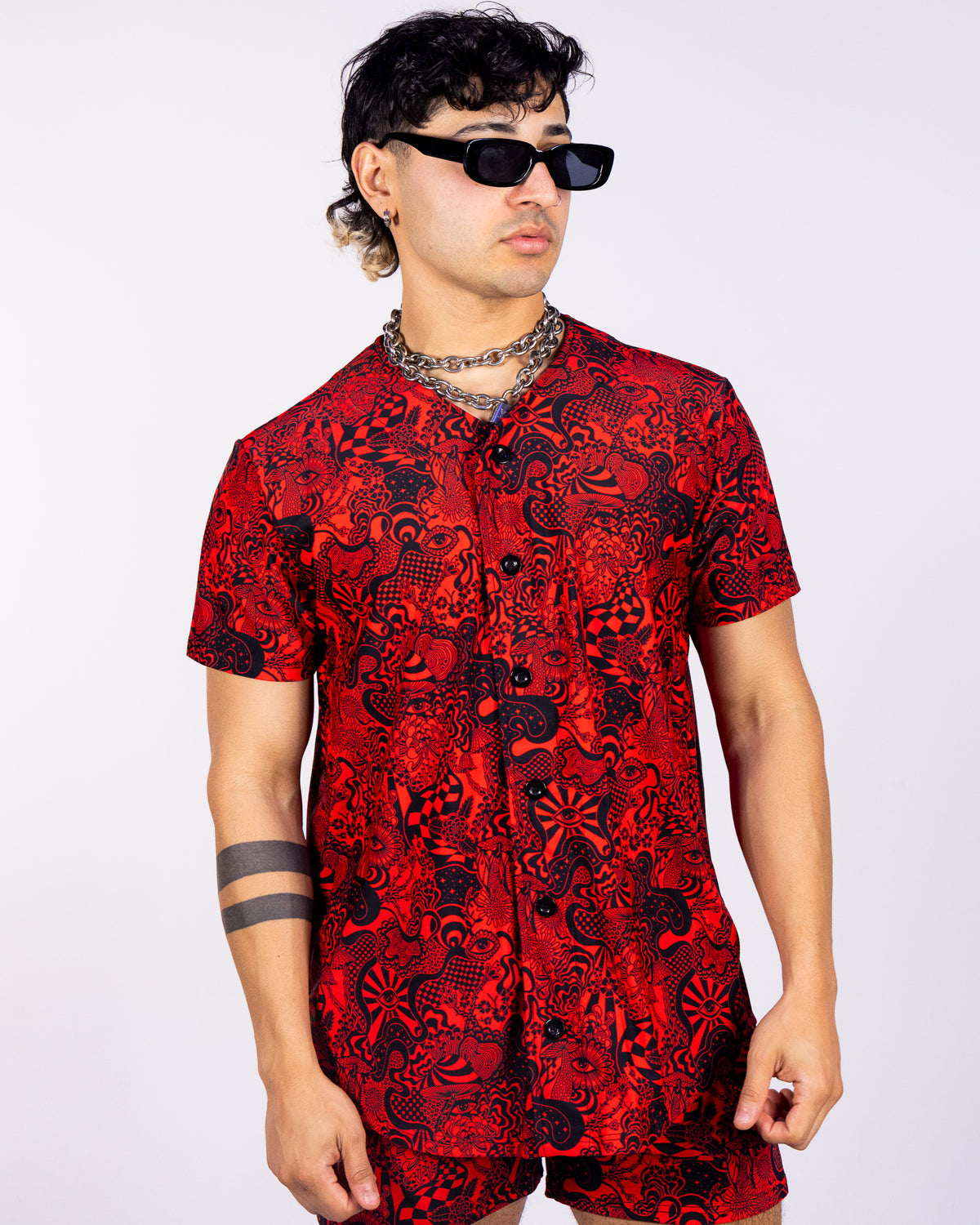 Trip out in the Crimson Zenith Collection - a Rave Wonderland exclusive! Get ready for some psychedelic vibes and reach new heights with this trippy doodle red & black print!