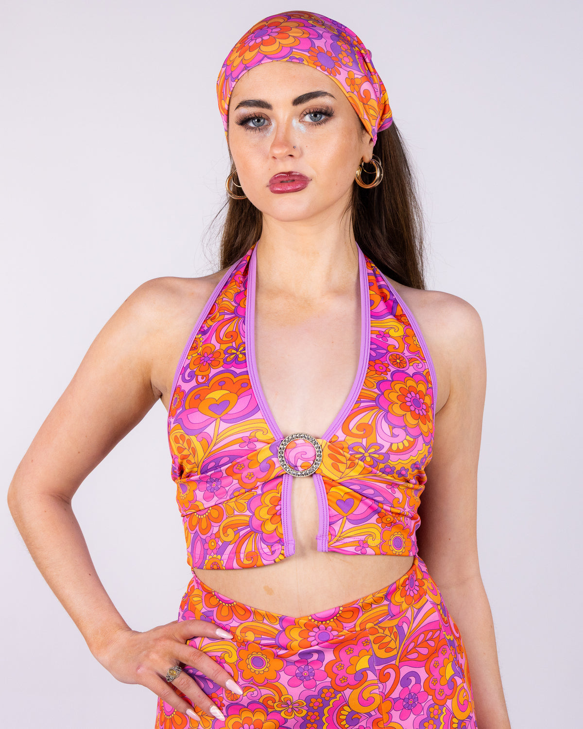Get ready to groove in our Paisley Daze Buckle Halter Top! The groovy & flowery pattern will make you stand out at any rave or music festival.