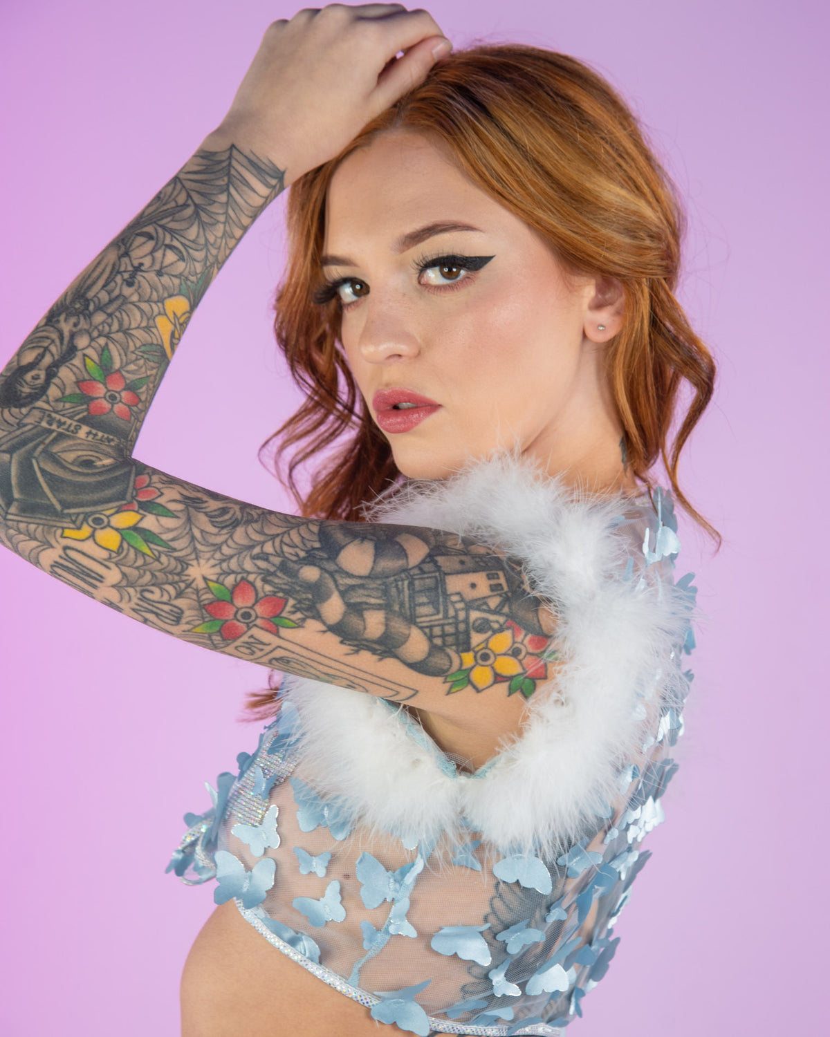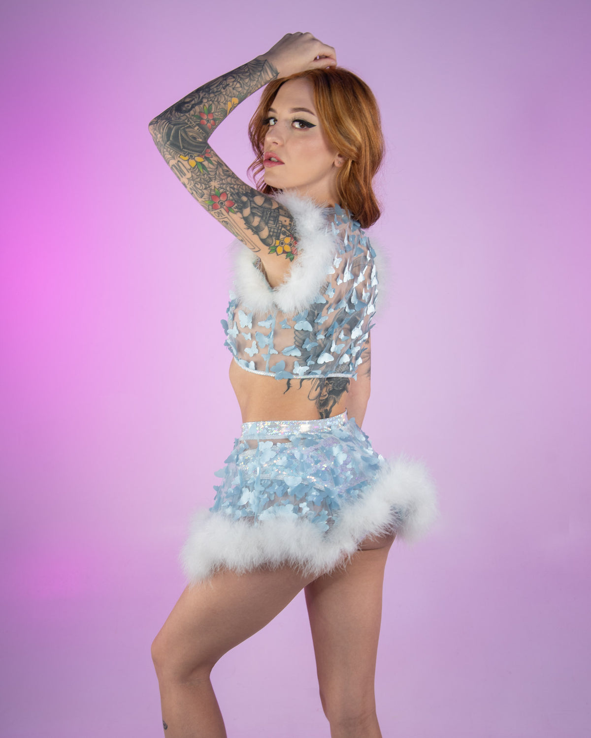 Butterfly Oasis Sheer Tie Top w/ Marabou Trim