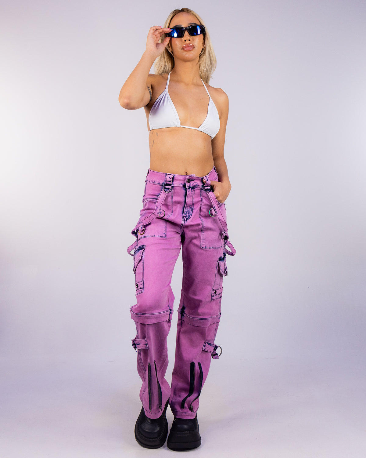 Make a bold statement with the Activated Women's Pink Denim Cargo Jeans. Designed with edgy hanging straps and functional cargo pockets, these jeans combine style and utility effortlessly. The vibrant pink denim adds a fierce pop of color to your look, perfect for standing out in any crowd. Embrace your daring side and elevate your streetwear game with this unique, eye-catching pair.