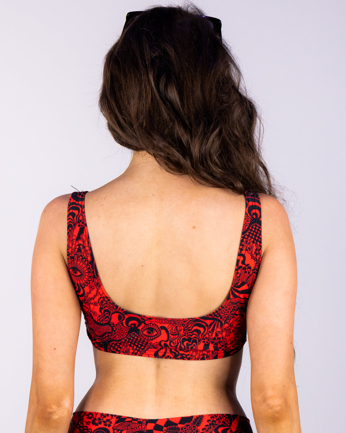 Trip out in the Crimson Zenith Collection - a Rave Wonderland exclusive! Get ready for some psychedelic vibes and reach new heights with this trippy doodle red & black print!