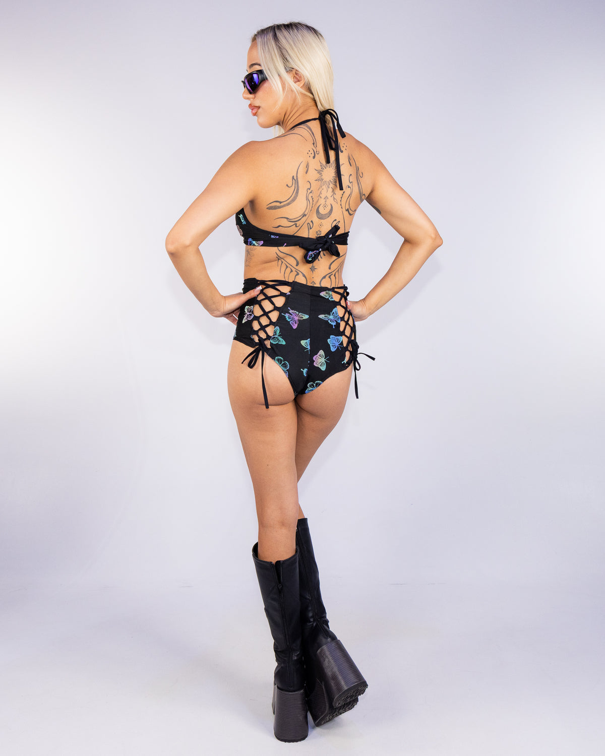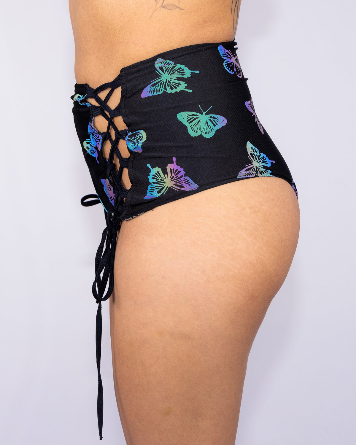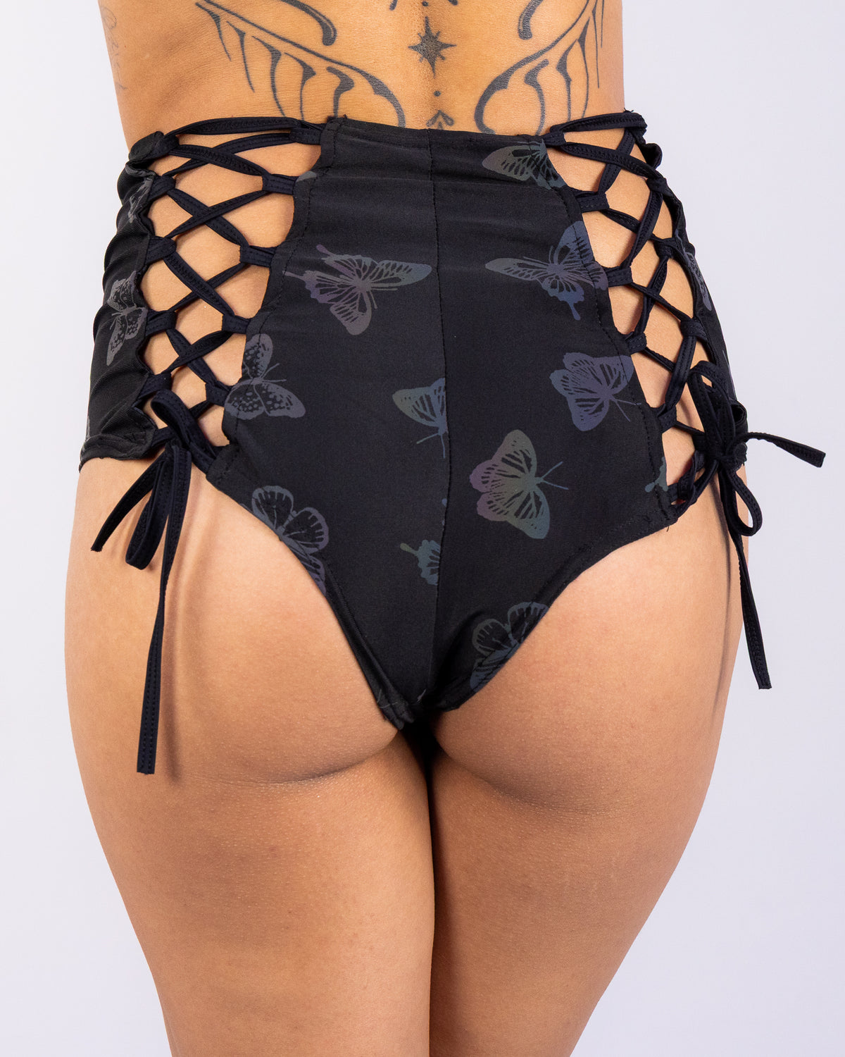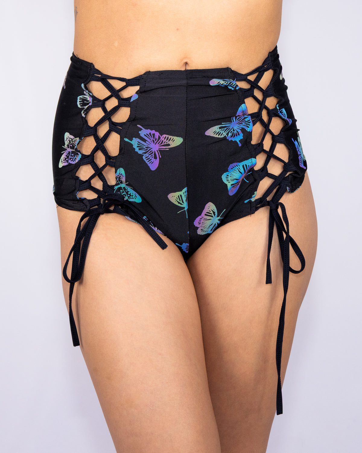 Flash Reflective Butterfly Women's Lace-Up Booty Shorts