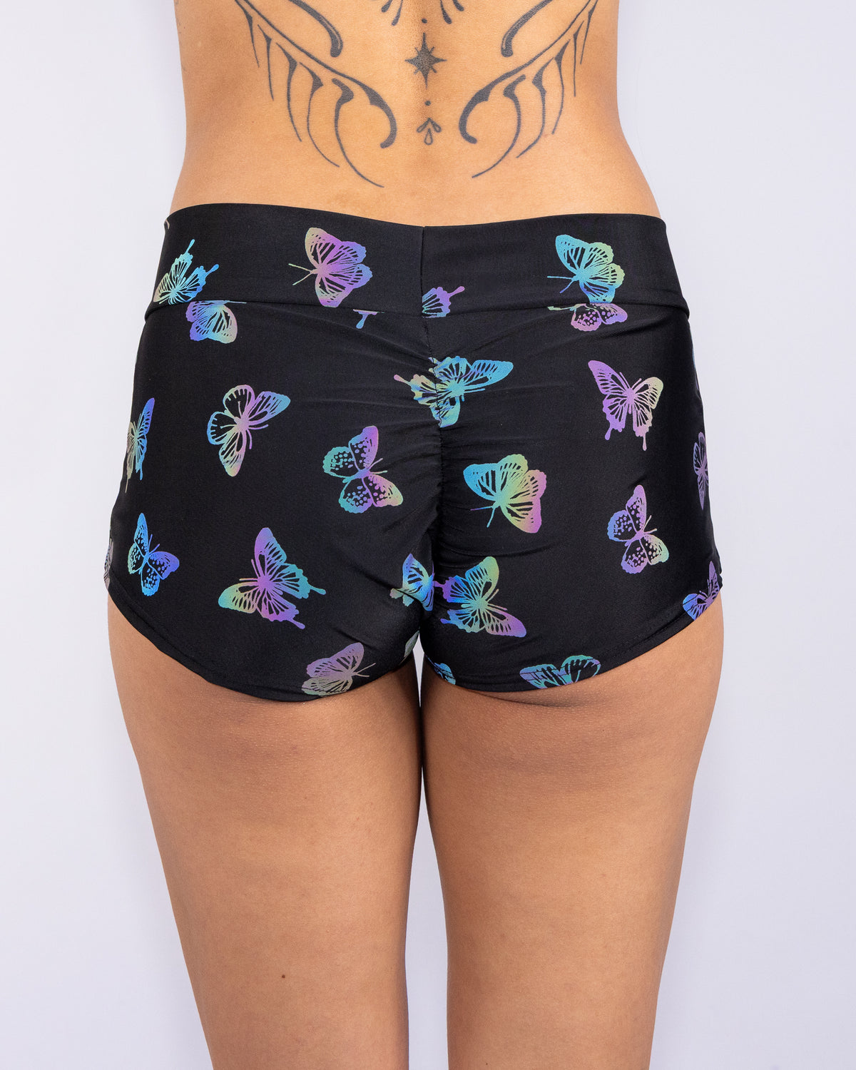 The Flash Reflective Butterfly Boy Shorts are made of soft stretchy material and features a scrunch back cut that is ultra flattering on the booty! These shorts fall just below the booty cheeks so it's perfect if you're looking for a little more coverage!