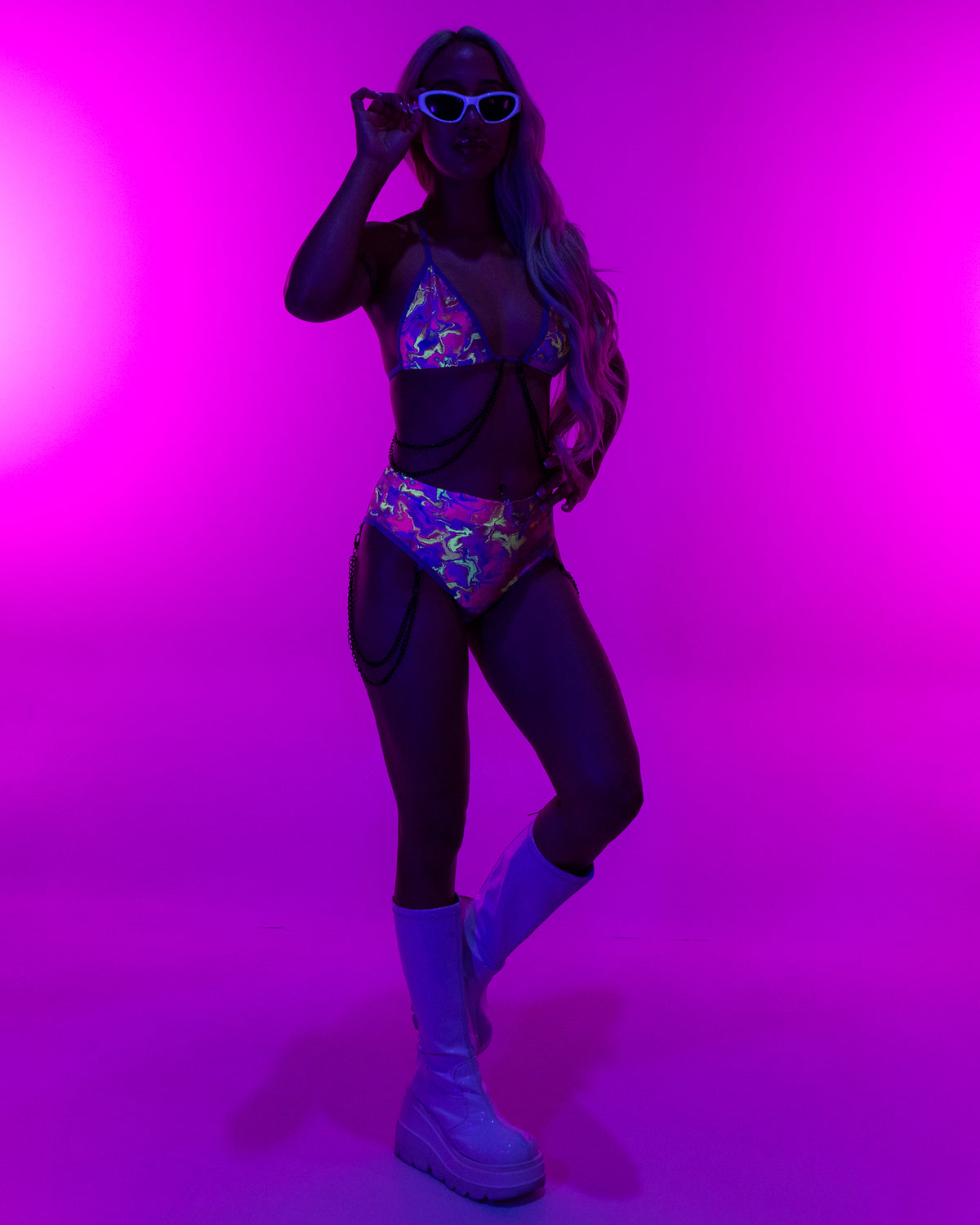 Trip out in the Ultraviolet Vision Collection - a Rave Wonderland exclusive! Get ready for some psychedelic vibes and reach new heights with this trippy UV print!