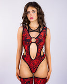 Crimson Zenith Women's Cutout Bodysuit