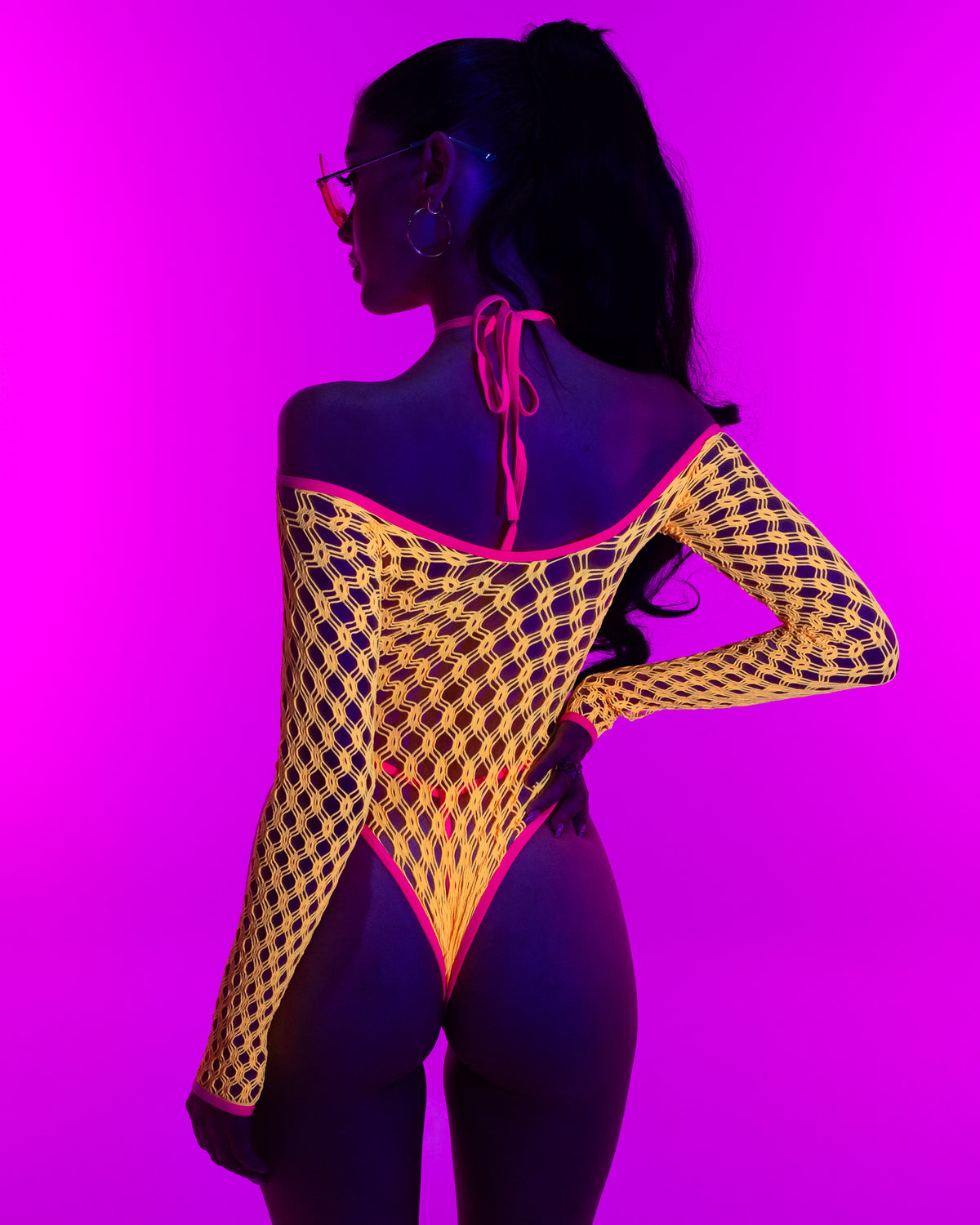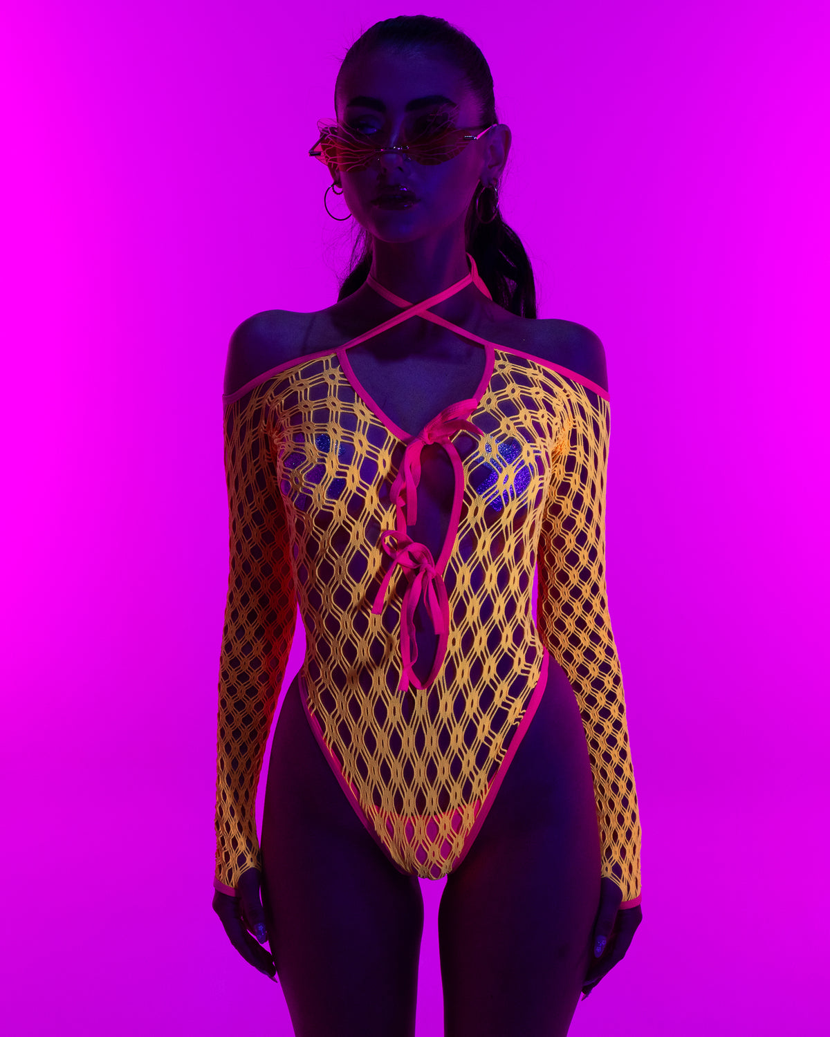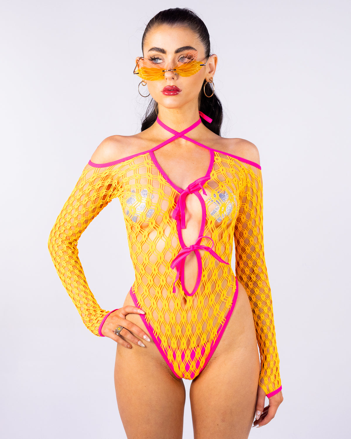Electric Love Women's Yellow/Pink Net Bodysuit