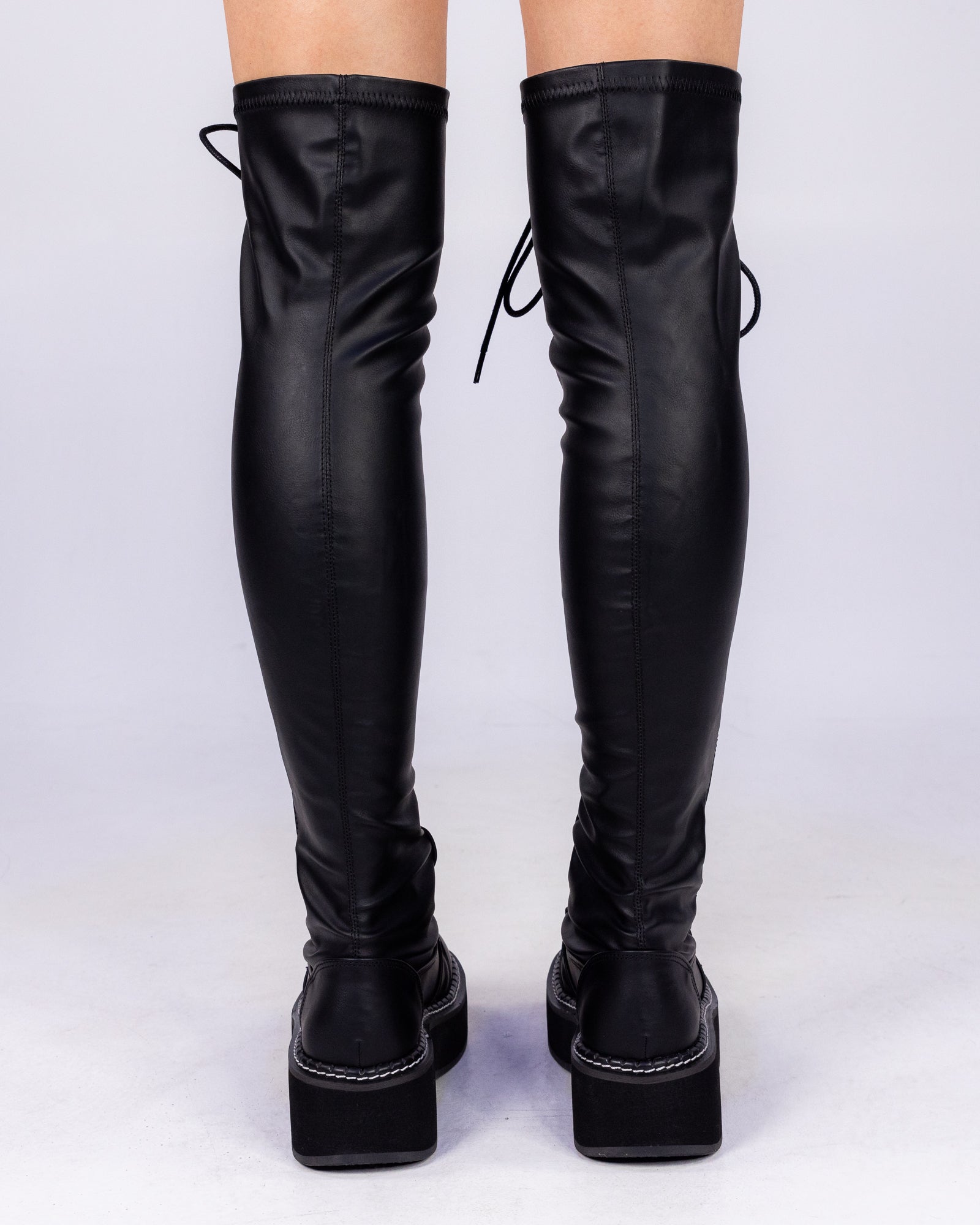 Embrace the bold and daring with the Demonia Emily Thigh-High Boots. Featuring a stylish lace-up design and edgy metal zipper, these boots are made from vegan leather for a cruelty-free option. Pair with booty shorts or a mini skirt for a fearless and fierce look, perfect for raves, music festivals, or everyday adventures!
