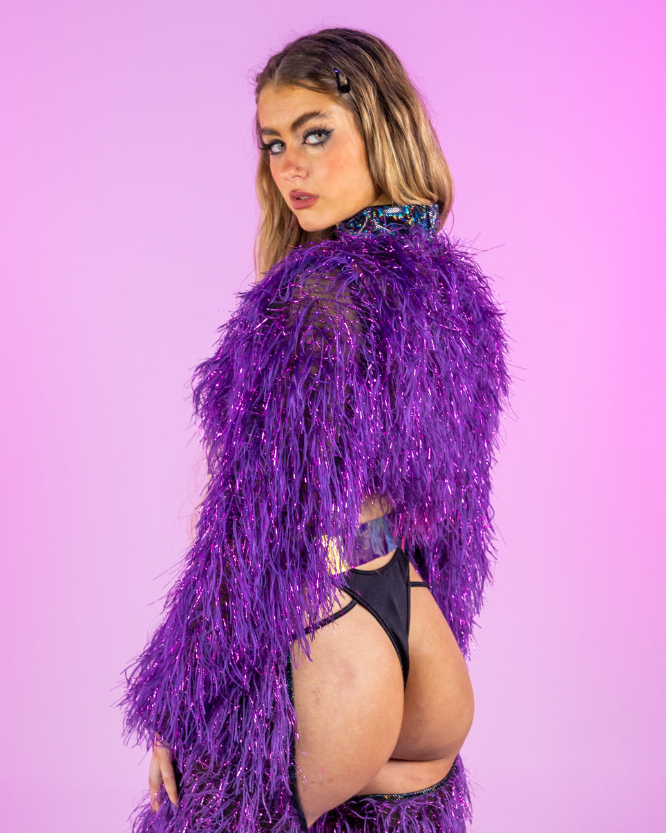 Funkmaster Long Sleeved Faux Fur Cropped Top
