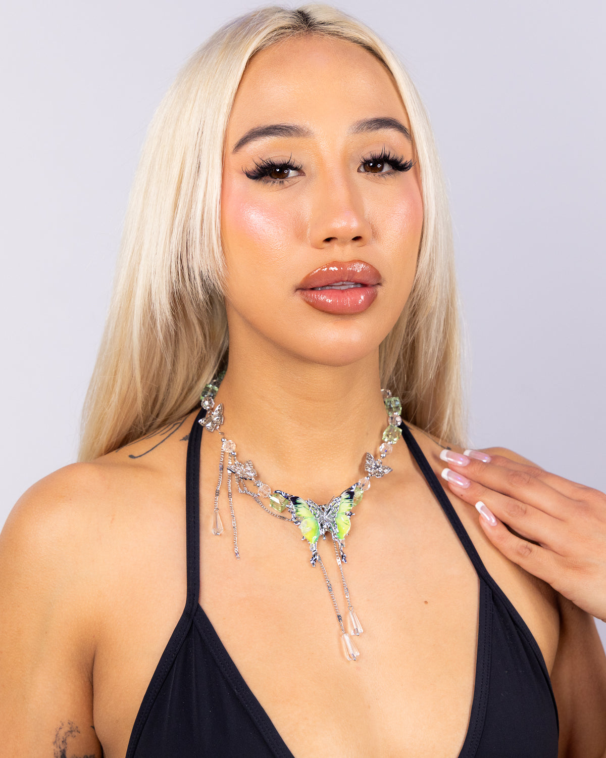 Take your style to the next level with our Jade Butterfly Women's Necklace! This piece features a silver chain with green bead accents and a statement blue butterfly pendant, making it the perfect accessory for those who crave adventure and aren't afraid to stand out.