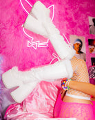 Time to show your feet some love and dance the night away in these amazing vegan suede platform boots! Comes with a full inner zipper. Heel is 5" and platform is 3".